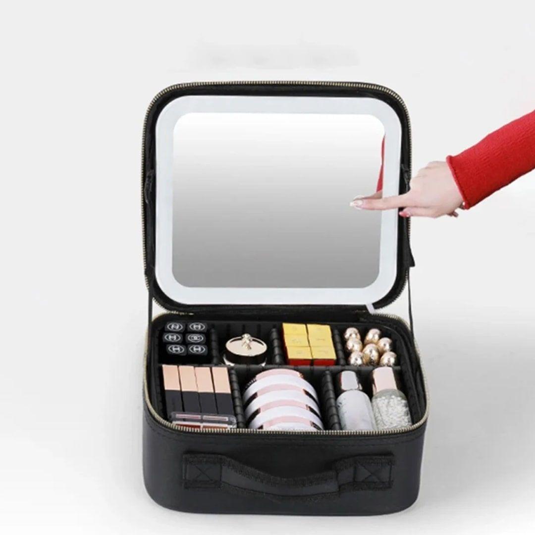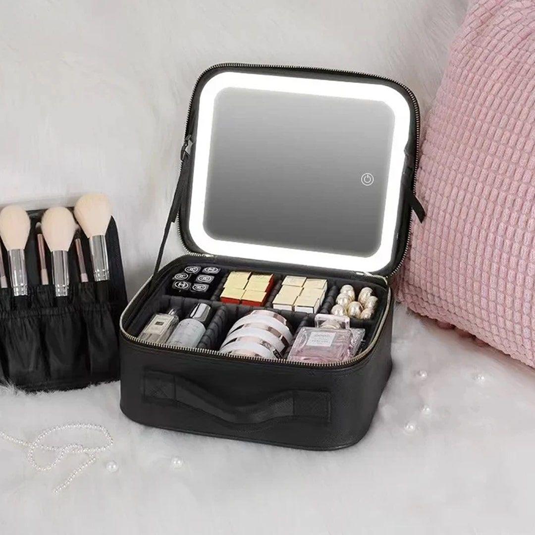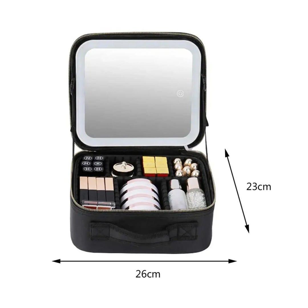حقيبة مكياج مع مرآة مضيئة قابلة للتعديل بمساحة منظمة