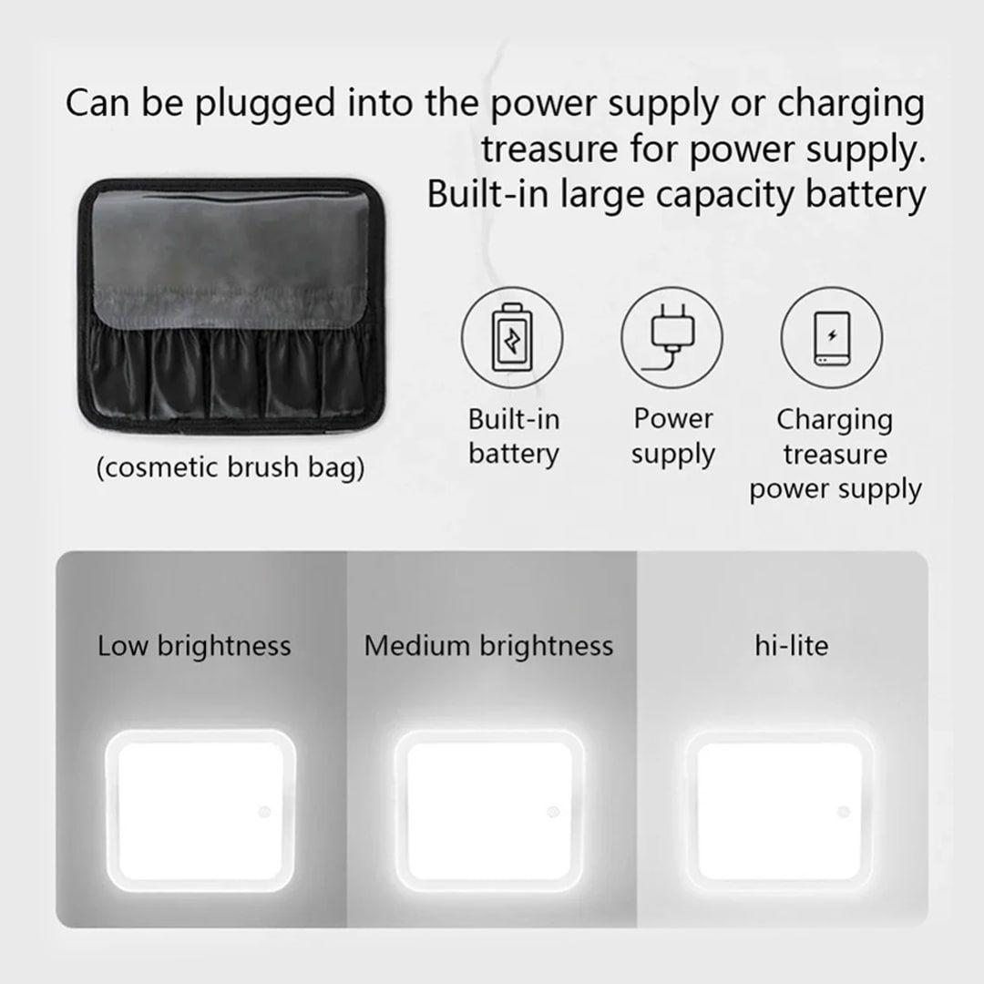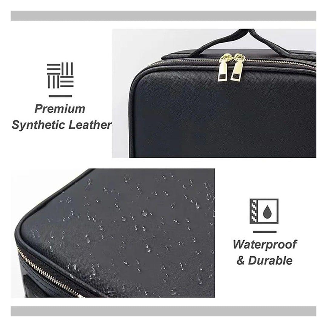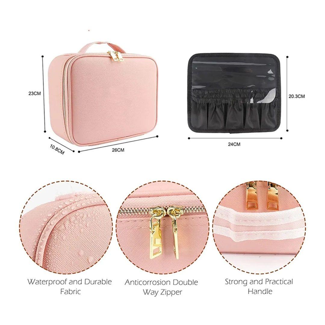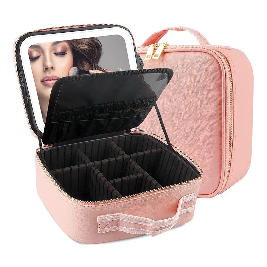 حقيبة مكياج مع مرآة مضيئة قابلة للتعديل بمساحة منظمة
