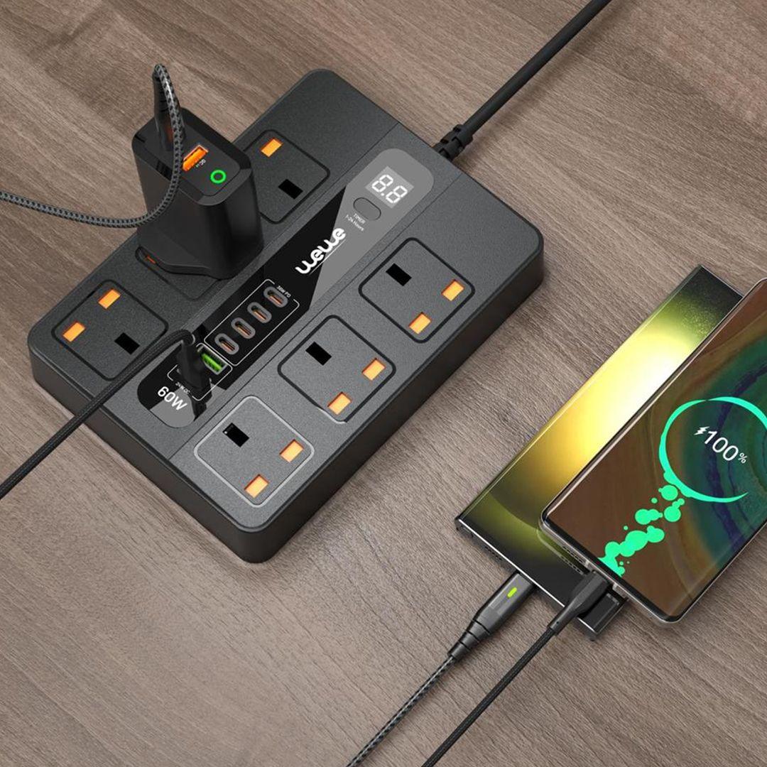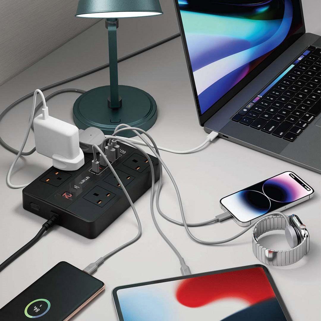 مشترك طاقة ذكي يوفر لك حلاً شاملاً لتوصيل جميع أجهزتك الكهربائية والشحن في مكان واحد!