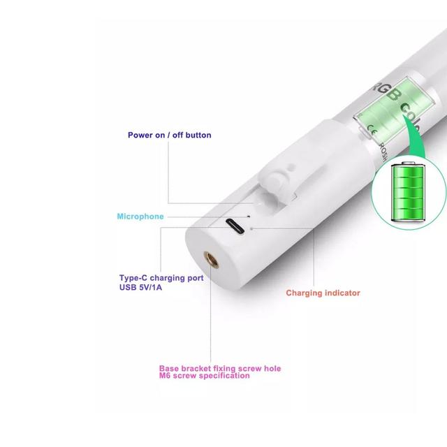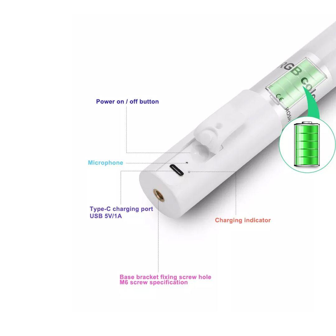 1: يحتوي المصباح على بطارية ليثيوم مدمجة قابلة لإعادة الشحن وتصميم مناسب وأنبوب اضاءة ملونة محمول باليد.