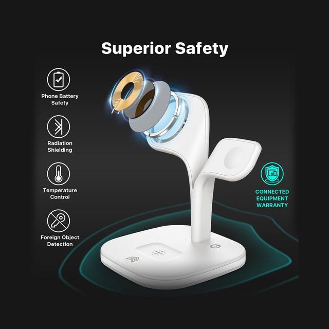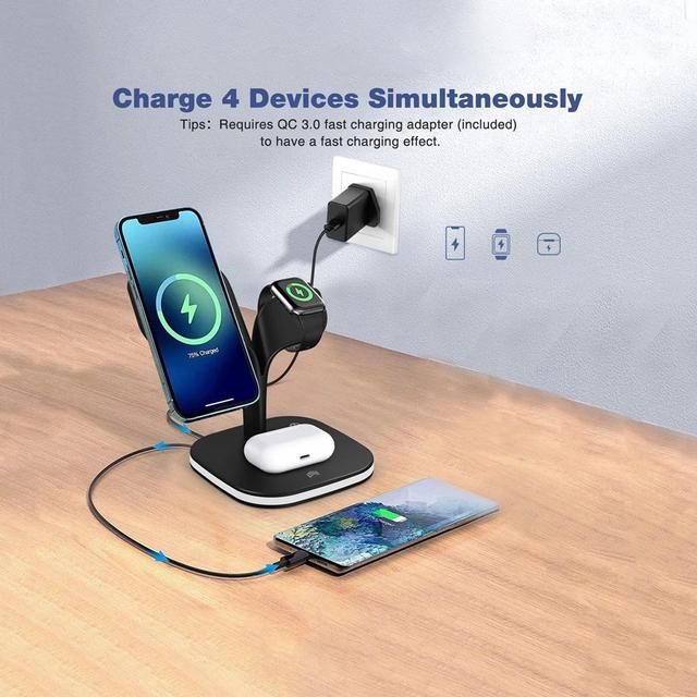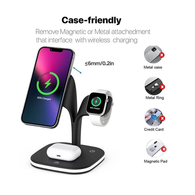 【توافق واسع】 وضع شحن 7.5 واط لجهاز iPhone ، تم تكييفه خصيصًا مع iPhone 12 ، لـ iPhone 12 Pro ، و iPhone12 mini ، و iPhone 13 ، و iPhone 13Pro ، و iPhone 13 Pro Max ، و iPhone 13 mini ، ومحطة شحن لـ Apple Watch series 6, Series 5, Series 4, Series 3, Series 2, Series 1, Series SE, AirPods 2, AirPods Pro