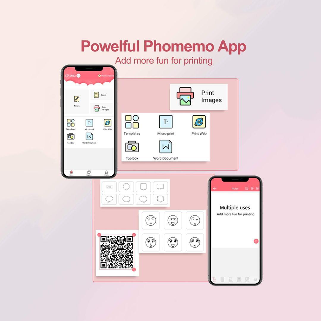 طابعة Phomemo M03 الحرارية اللاسلكية المحمولة لطباعة فورية متوافقة مع أنظمة الأندرويد وiOS