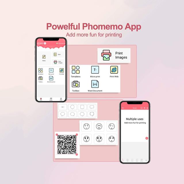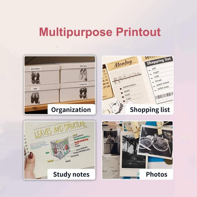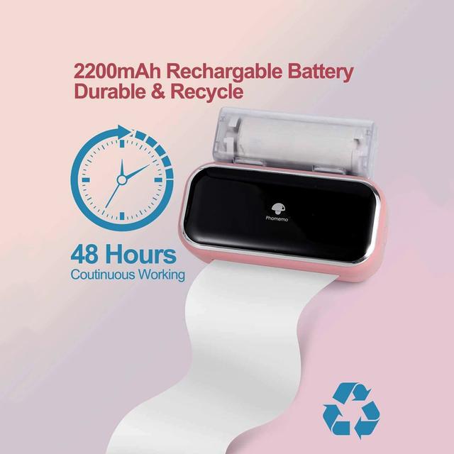 انطلق في مشروعاتك: الطابعة المحمولة اللاسلكية M03 تزن أقل من نصف كجم. يمكنك إعدادها بسرعة وتقديم مطبوعات رائعة يمكنك لصقها في كل مكان. رائع لسجل القصاصات وخطة العمل والمذكرة والملاحظات وقائمة التسوق والمزيد. متوافقة مع حجمين من الورق ، 2 أو 3 بوصات (50-53 مم أو 77 مم -80 مم). فقط المطبوعات بالأبيض والأسود.