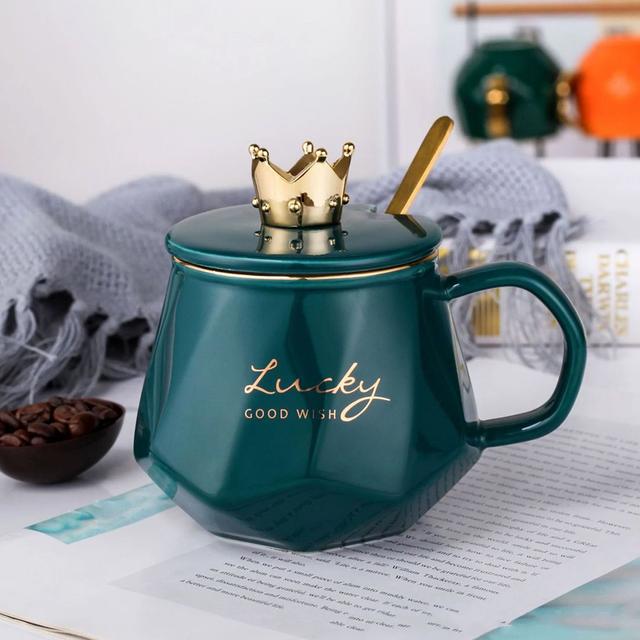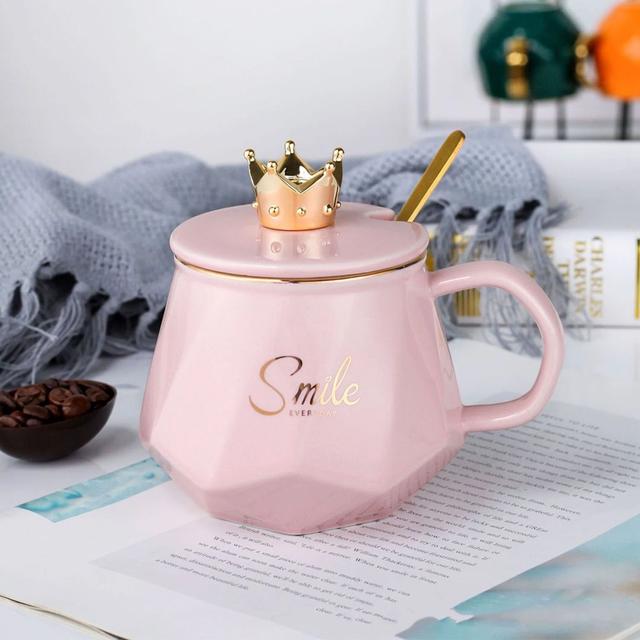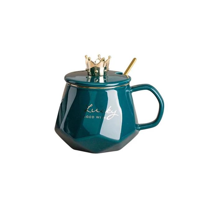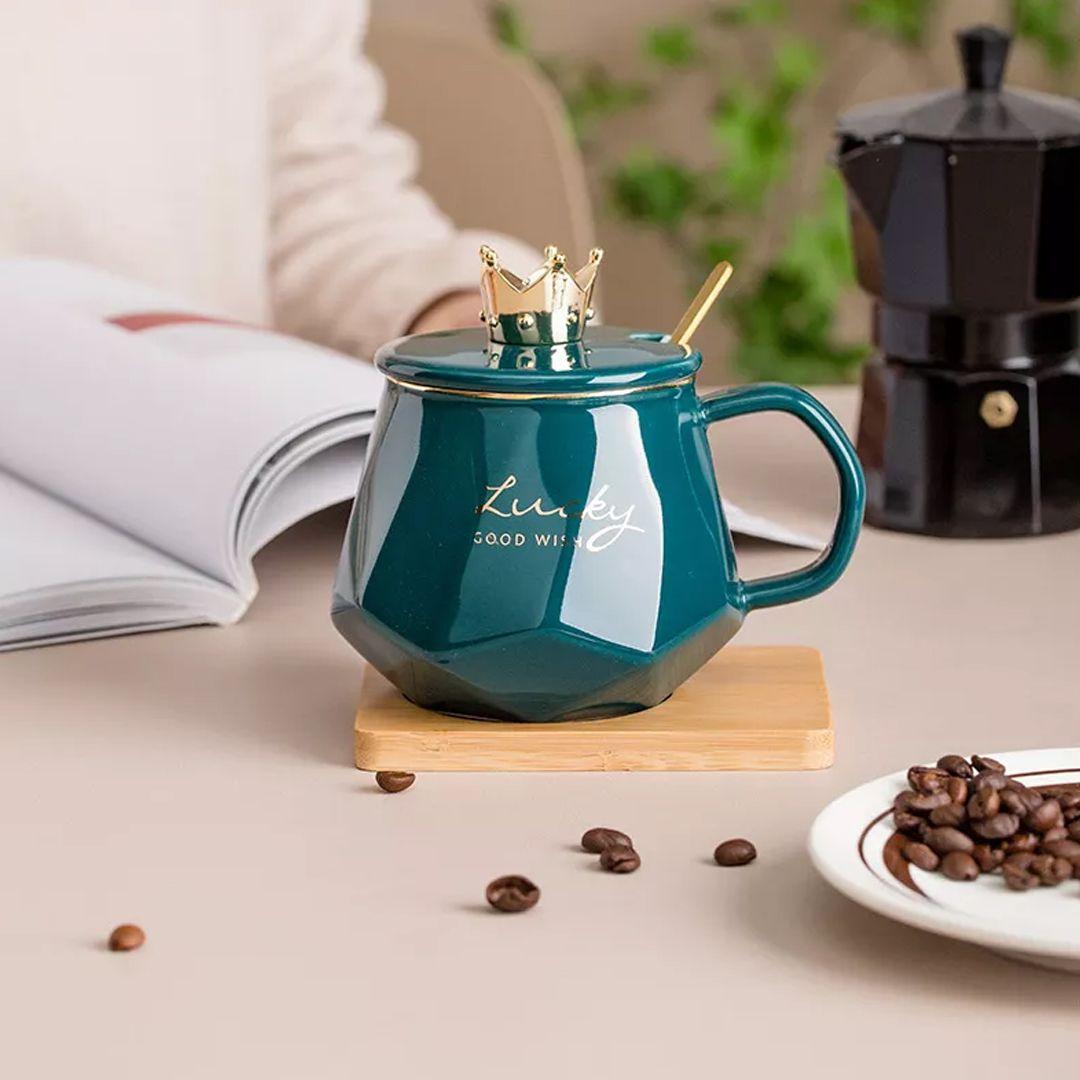 ماج سيراميك بسعة 400 مل مزود بغطاء بشكل تاج ملكي مع ملعقة وقاعدة تسخين