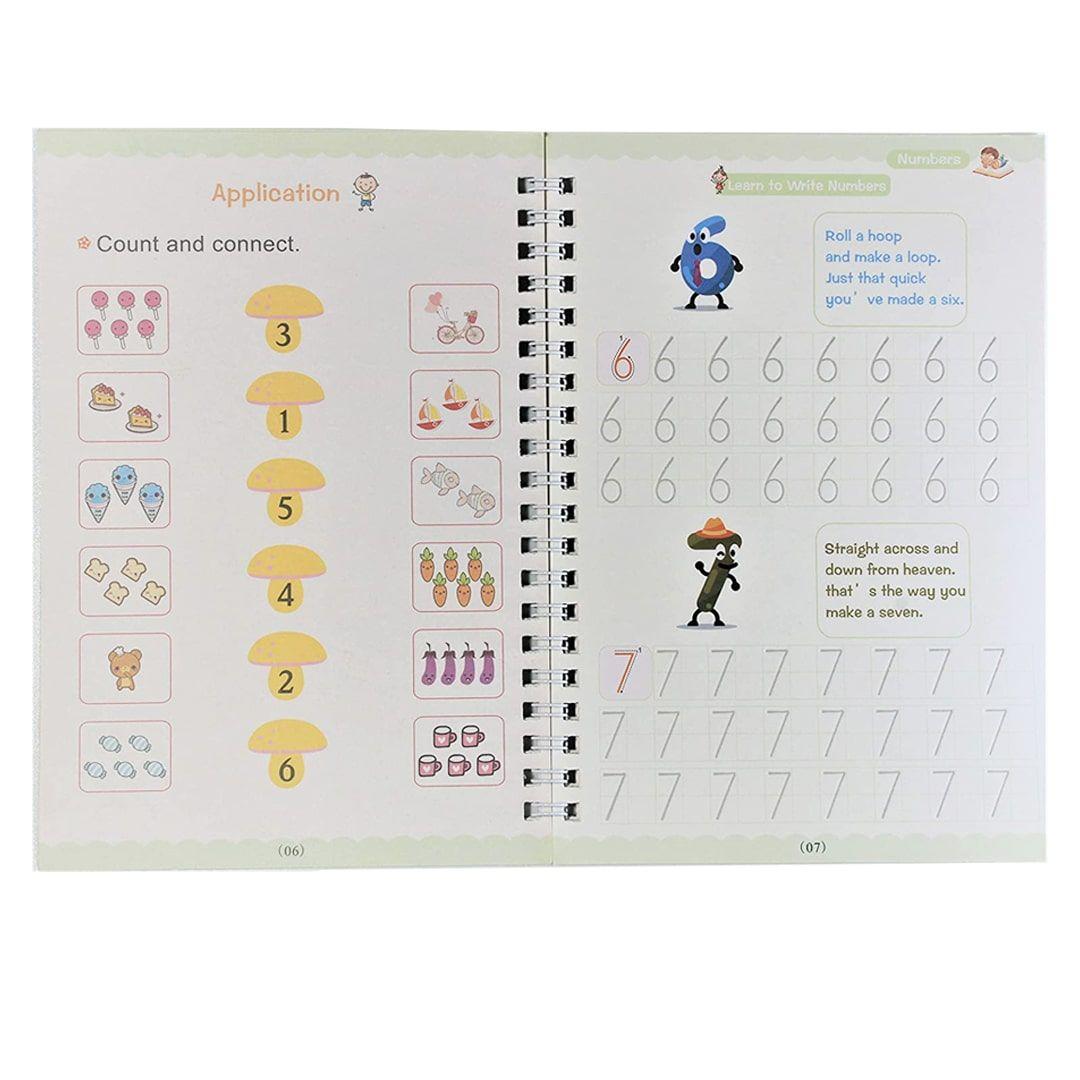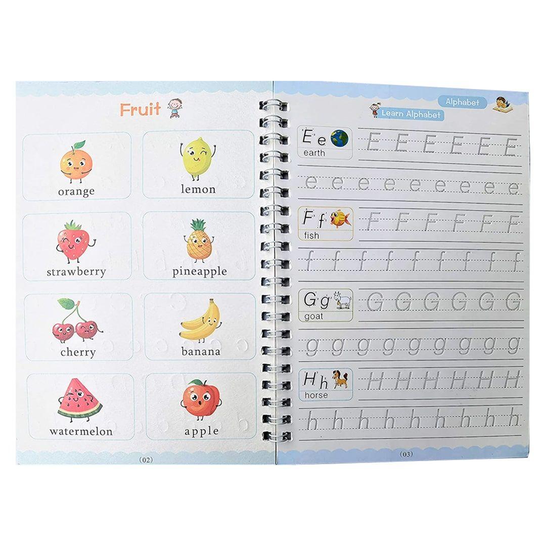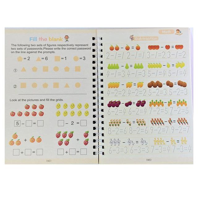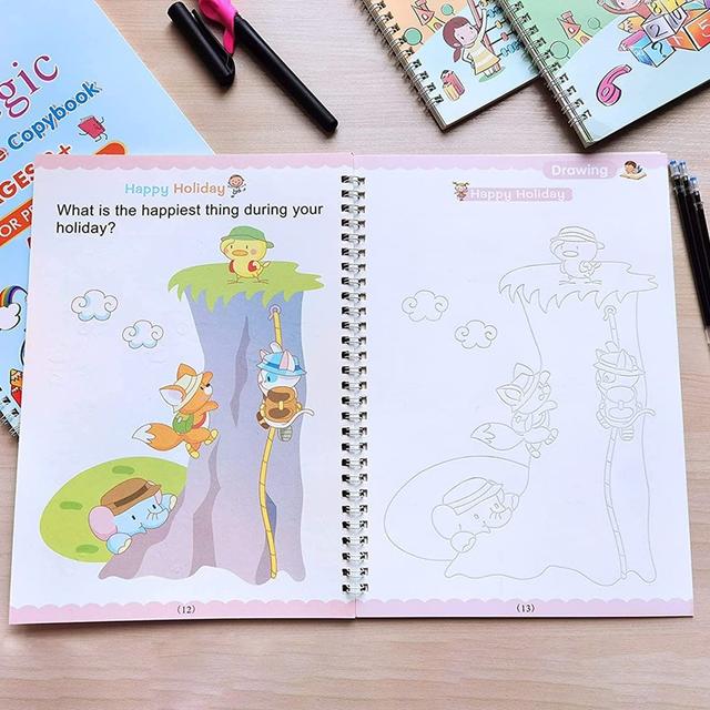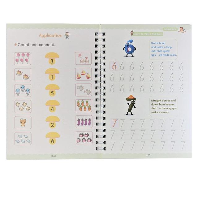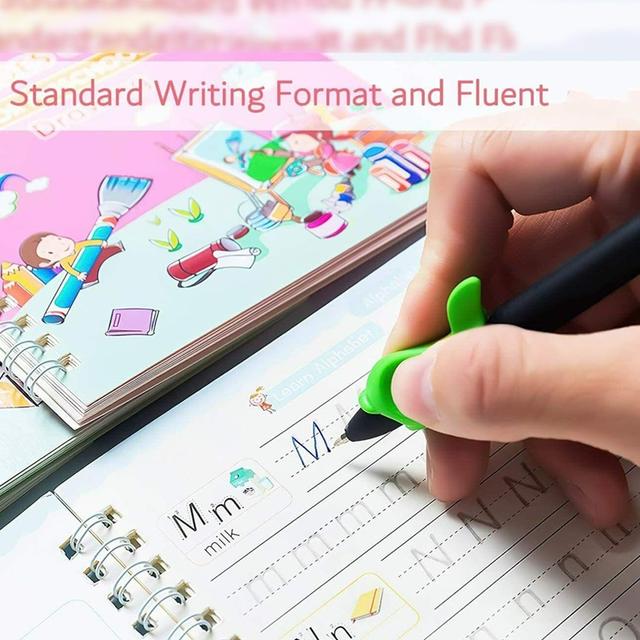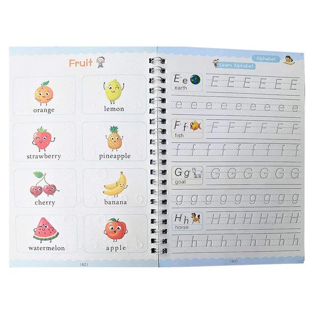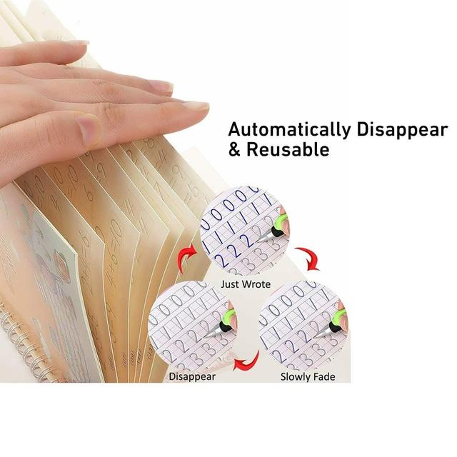 مواد قابلة لإعادة الاستخدام: الكتاب السحري مصنوع من الورق السميك ، بدون تجعيد ، يستخدم تصميم الحفر، وستختفي الكتابة اليدوية تلقائيًا بعد الجفاف ، وبالتالي ، يمكن استخدام دفتر النسخ بشكل متكرر لفترة طويلة ، مما يساعد الأطفال على كتابة كلمات وأرقام إنجليزية جميلة.