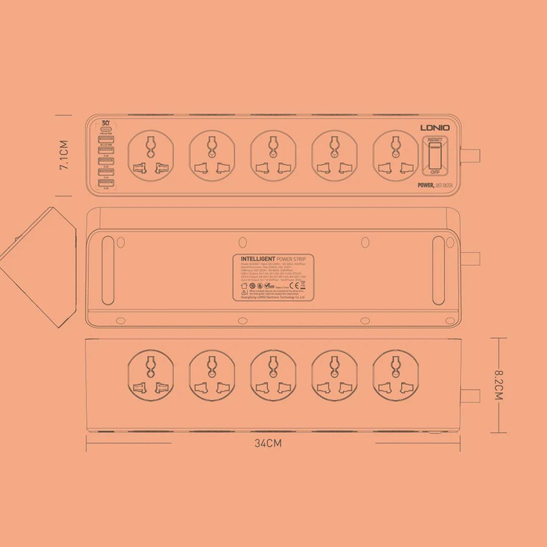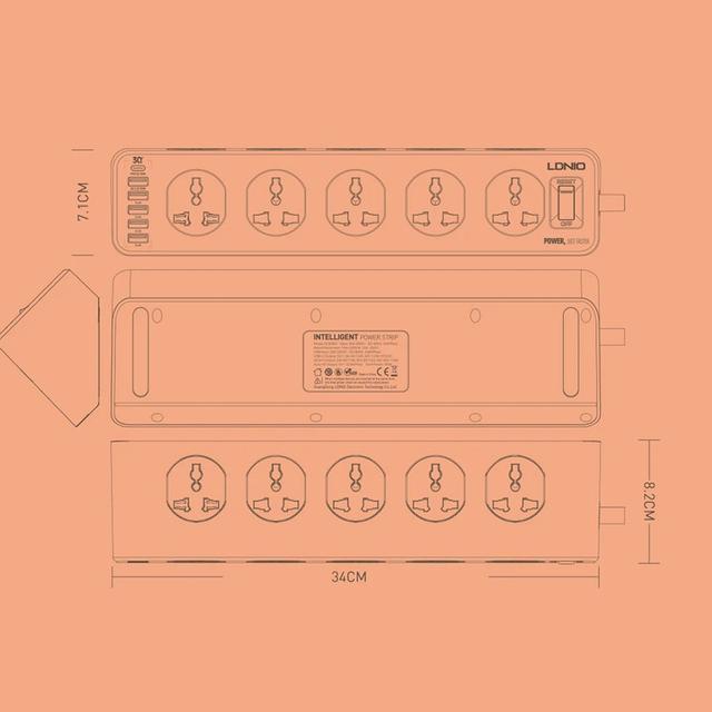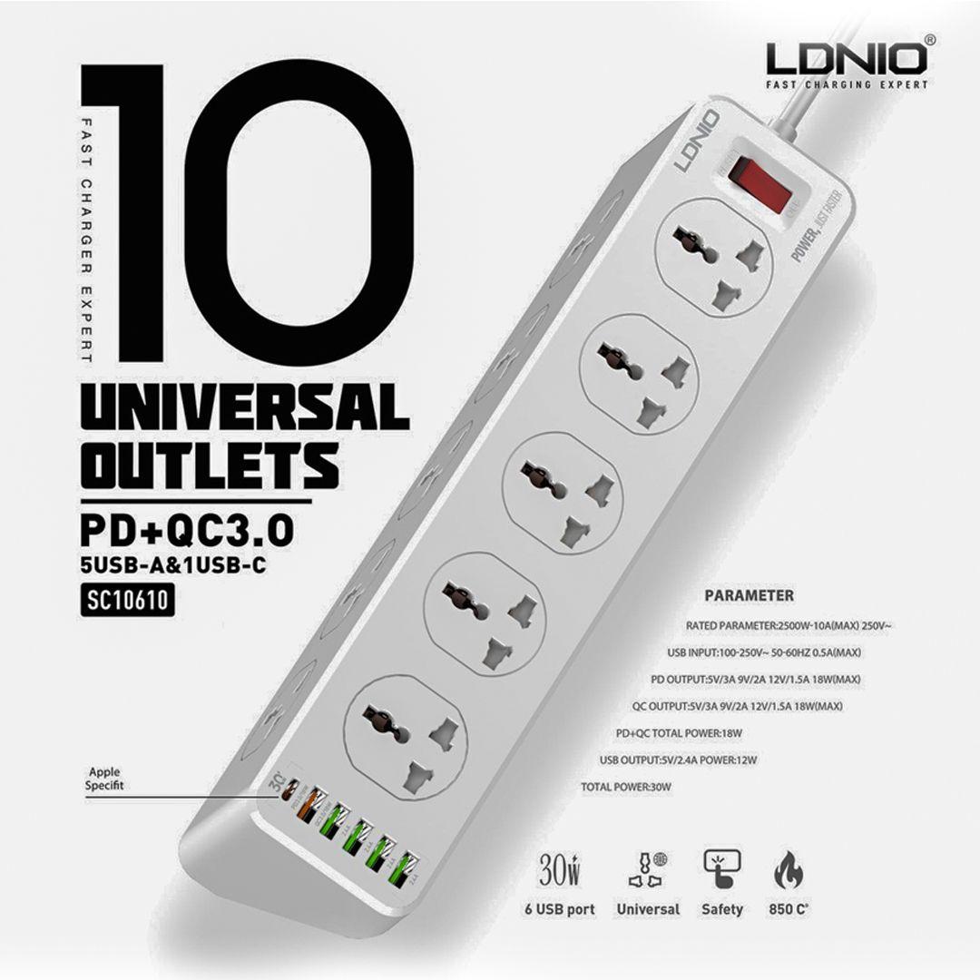 مشترك LDNIO SC10610 بتصميم هرمي مع 10 مخارج كهرباء + 5 مخارج USB + مخرج PD