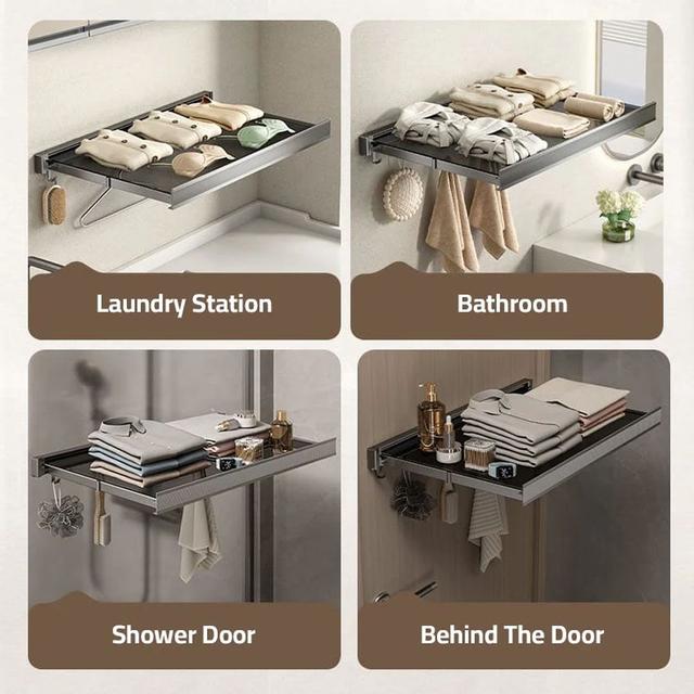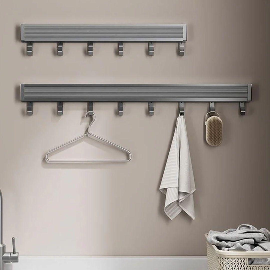 خطافات متعددة الاستخدامات: يحتوي المنشر الكبير على 8 خطافات، بينما الصغير مزوّد بـ6 خطافات مثالية لتعليق المناشف، أردية الحمام، الملابس الداخلية، أو الإكسسوارات.