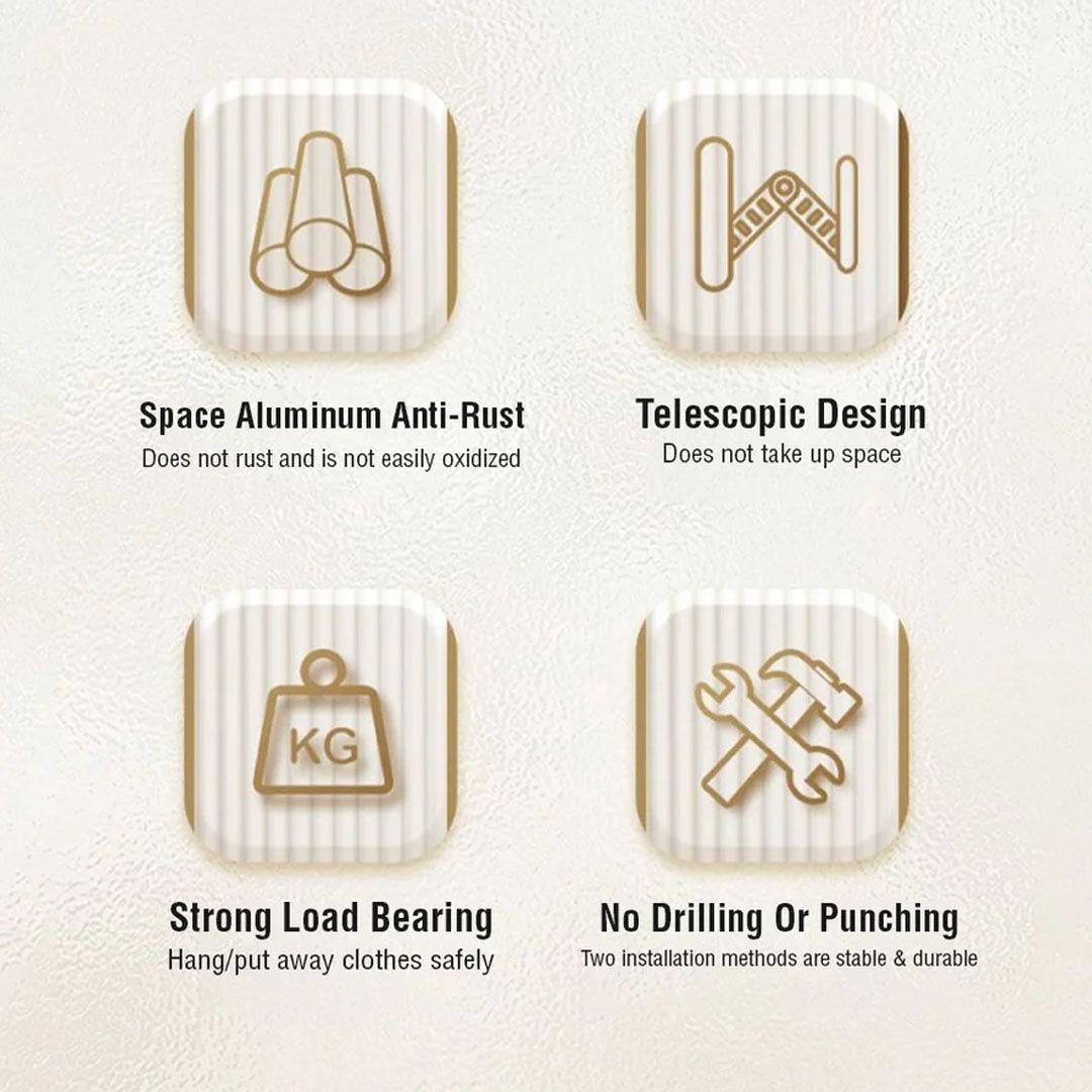 استخدامات متعددة: ليس فقط لتجفيف الملابس، بل يمكن استخدامه كمنظم يومي يوفر ترتيبًا أنيقًا وفعّالًا لمختلف أنواع الملابس والأقمشة.