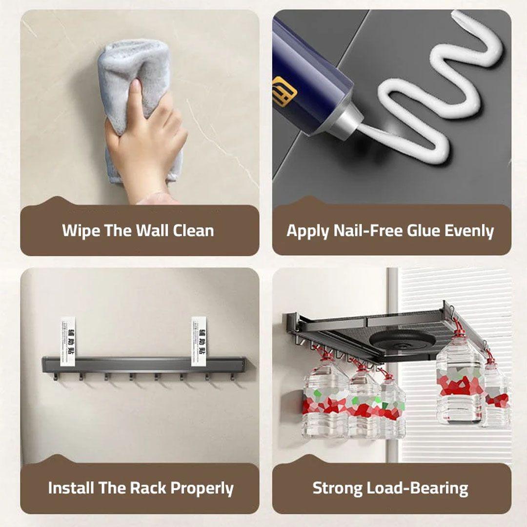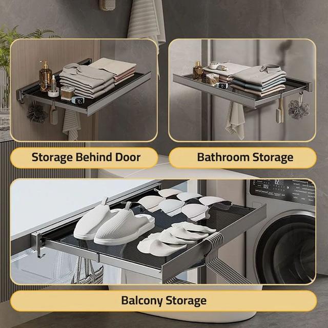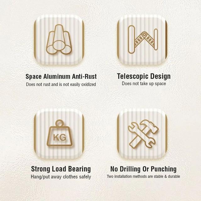 تركيب مرن: يمكن تركيبه إما بالحفر أو بدون ثقب حسب نوع الحائط، مما يجعله مناسبًا للحمامات، الشرفات، غرف النوم، وحتى خلف الأبواب.