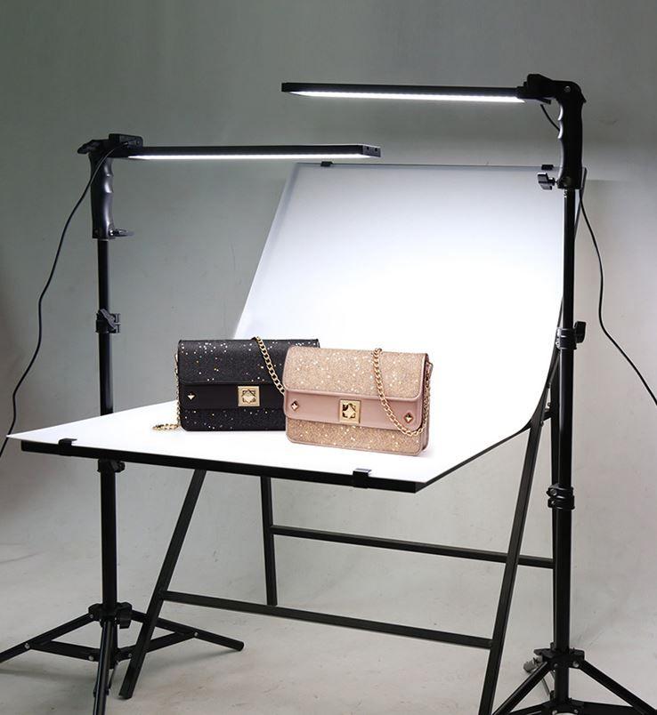 مجموعة إضاءة تصوير احترافية + طاولة تصوير قابلة للطي بحجم 60 × 100 سم