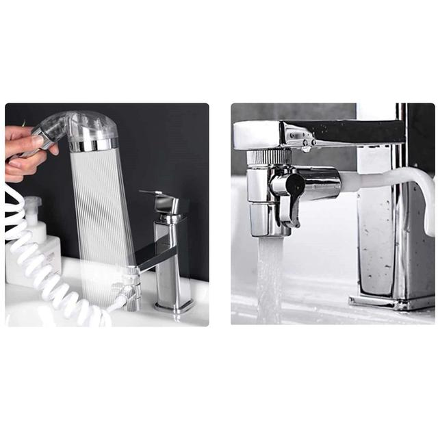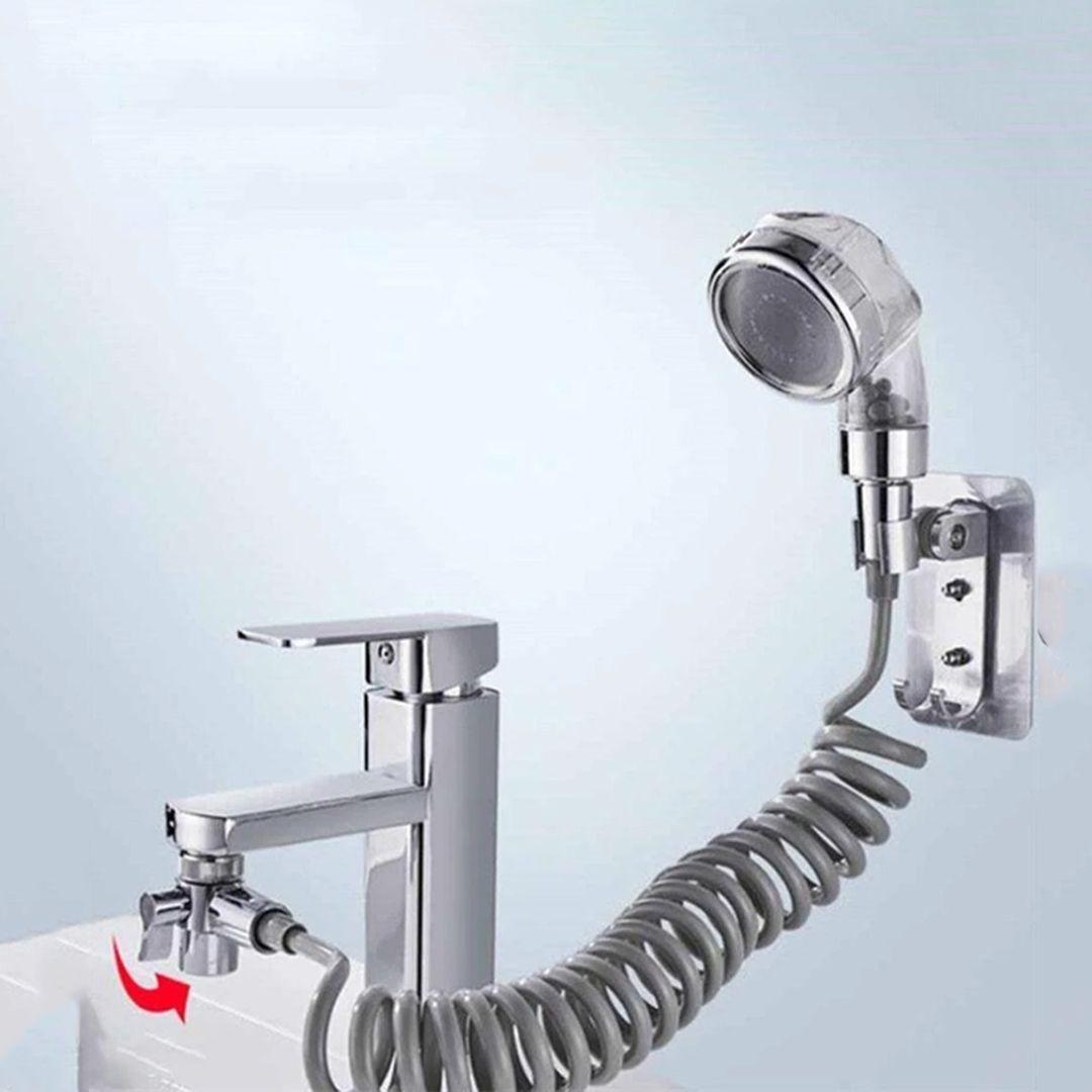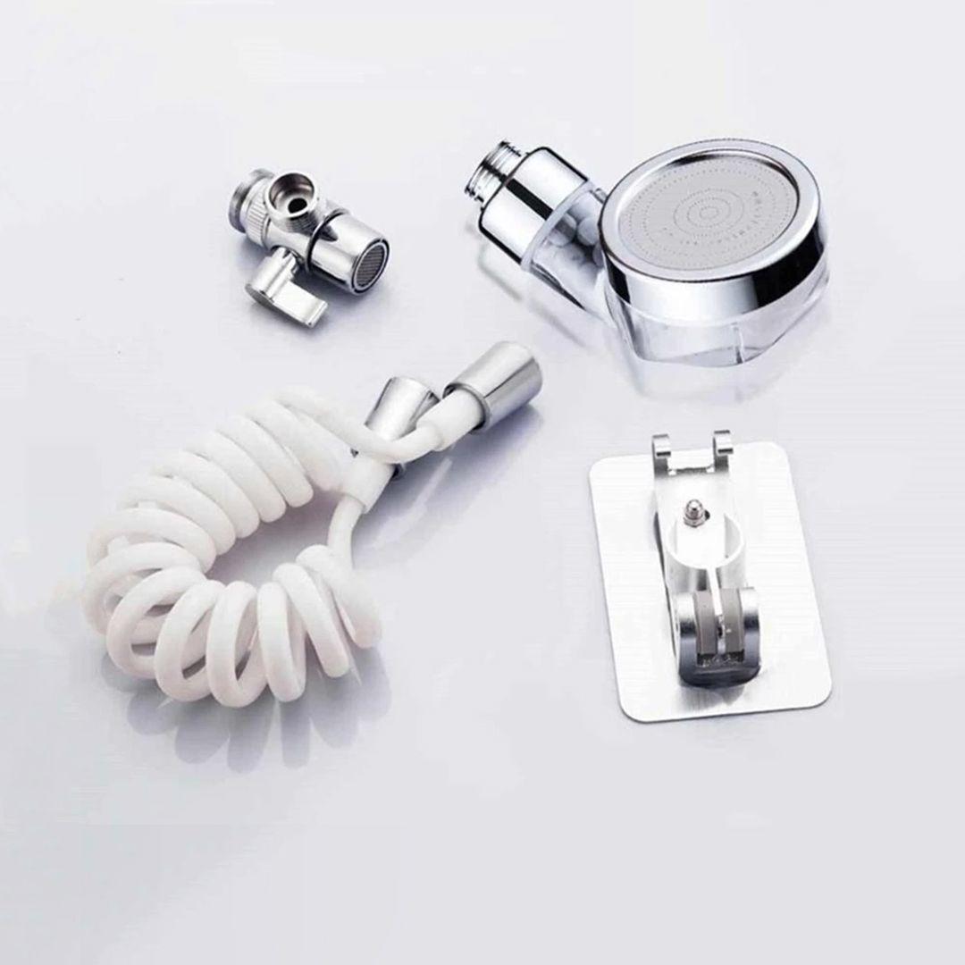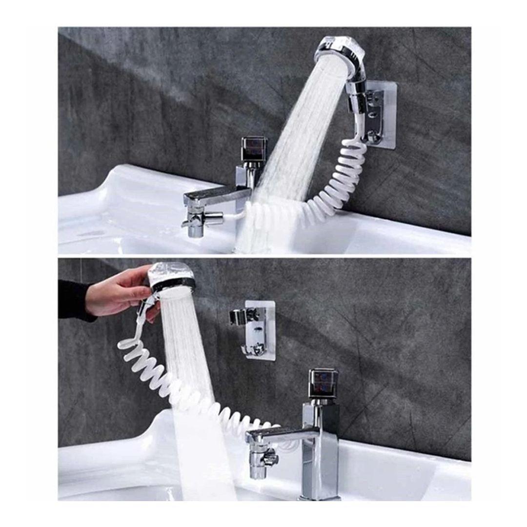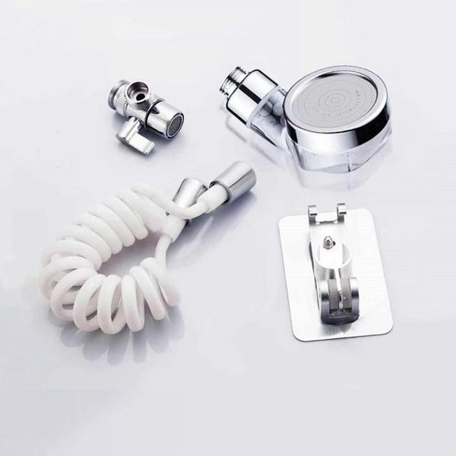 رأس دش لزيادة ضغط الماء وتصفية الماء للحوض برأس دوار مثبت بالصنبور مع خرطوم قابل للتمدد