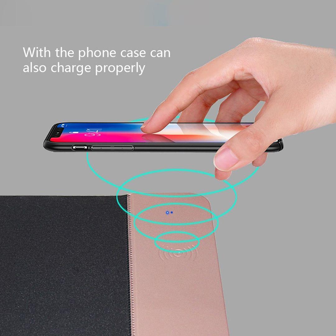 شحن الهاتف عن طريق وضعه على منطقة شحن لوحة الماوس ويمكنك أخذه بعيدا دون أي تقييد بكابل شحن. شاحن هاتف ممتاز للعمل مع الكمبيوتر