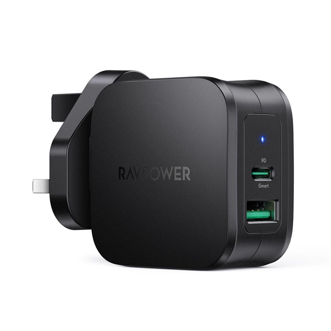 شاحن RAVPower RP-PC144 مع منفذين يدعم الشحن السريع بقوة 30 واط