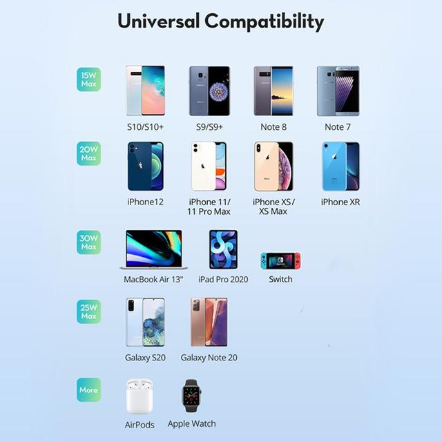 تمتع بتجربة شحن فائق السرعة وآمن مع شاحن RAVPower RP-PC144، المصمم خصيصًا ليوفر لك أداءً عاليًا يناسب احتياجاتك اليومية في العمل أو أثناء السفر. بفضل قوته التي تصل إلى 30 واط، يمكنك شحن أجهزتك في وقت قياسي.