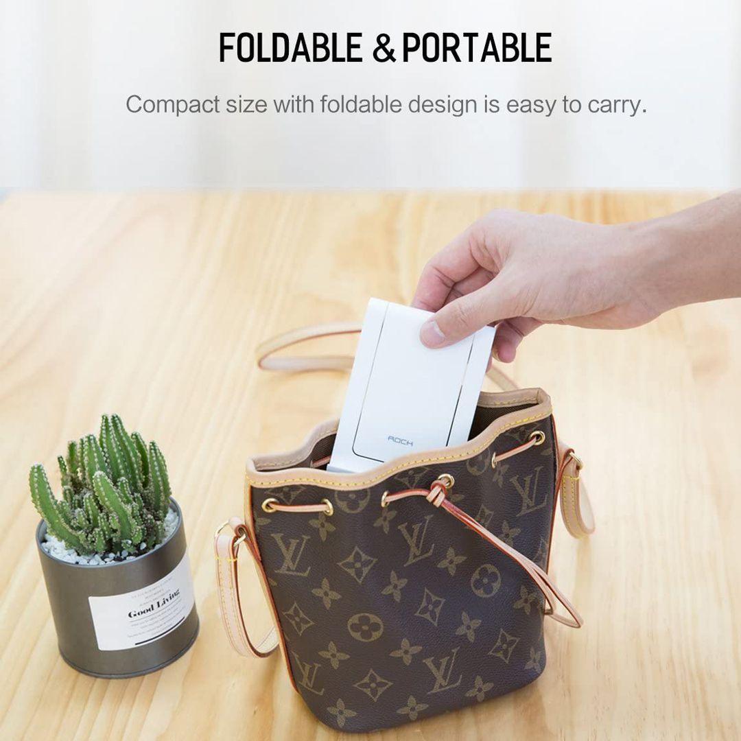 - الاستخدام: مناسب لمختلف الأجهزة مثل الهواتف كما انه قابل للطي وسهل الحمل بتصميمه الصغير لسهولة التنقل.