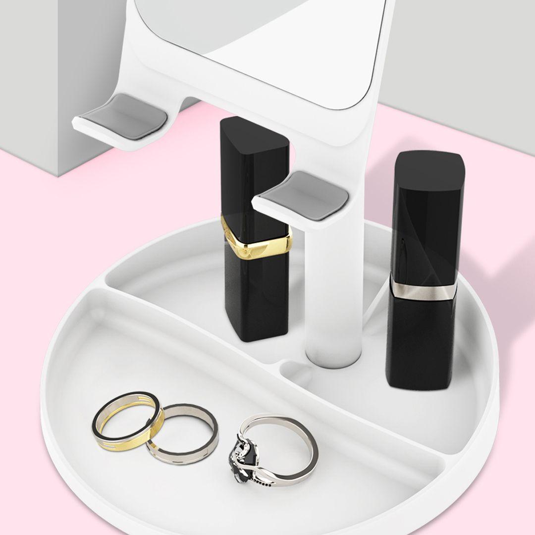 - التصميم: مظهر أنيق مدمج بمرآة تساعدك روية مظهرك في أي وقت.