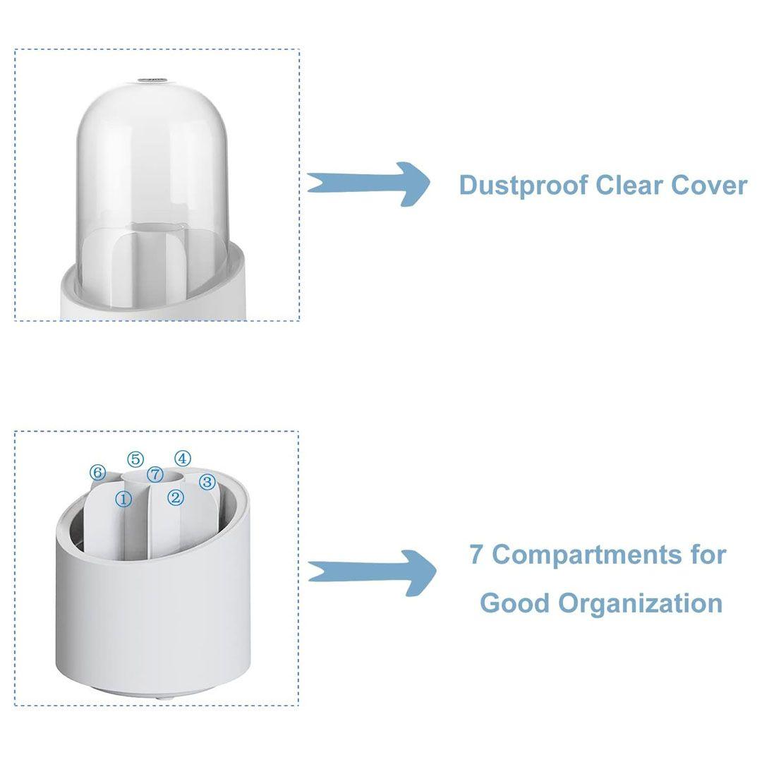منظم المكياج الدوار 360 درجة مع غطاء شفاف و7 خانات للتخزين