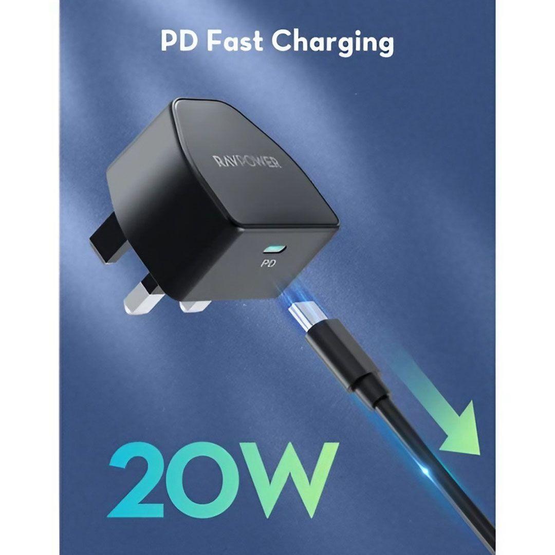 شاحن حائط PC1041 USB-C من RAVPOWER بقوة 20 واط مع PPS للشحن السريع