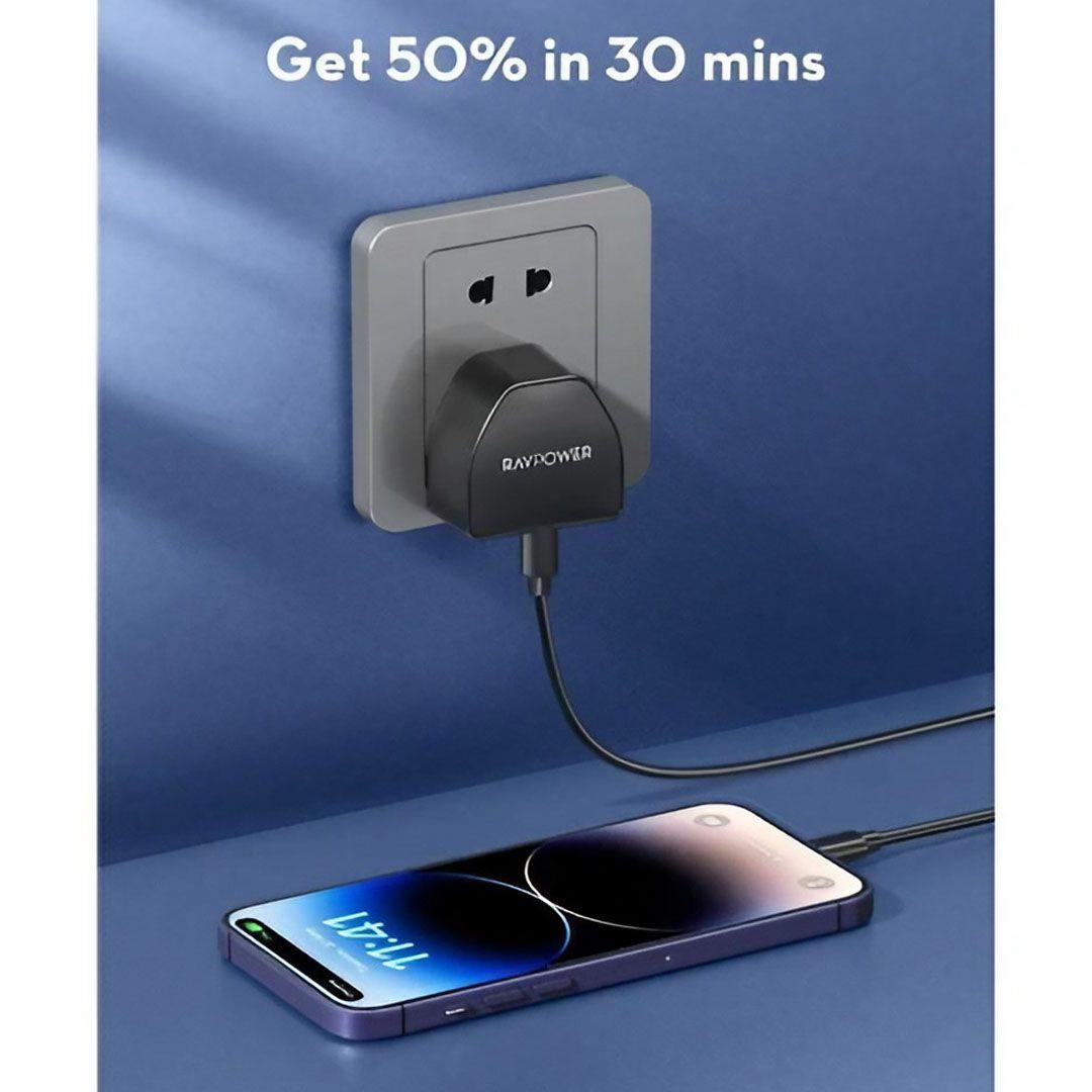 - الشحن: شاحن حائط Type C بقوة 20 واط من RAVPower.