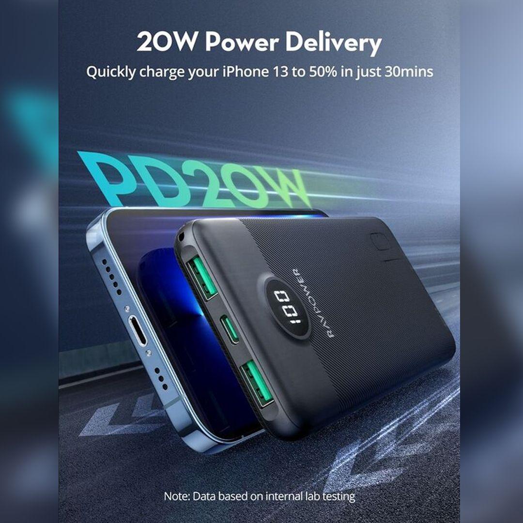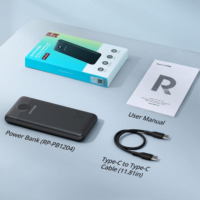 يمنحك باور بانك RAVPower RP-PB1204 شحنًا سريعًا وآمنًا بفضل تقنية Power Delivery 20W، مما يضمن إعادة شحن أجهزتك بكفاءة عالية. مع تصميمه النحيف والمحمول، يمكنك حمله بسهولة في جيبك أو حقيبتك، ليكون رفيقك المثالي أثناء التنقل.