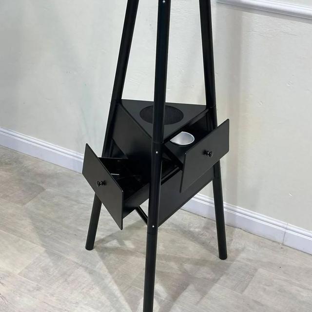 مصنوع من خشب مضغوط مع هيكل حديد، وثباته ممتاز بفضل القاعدة المثلثة، ما يتحرك ولا يهتز بسهولة.