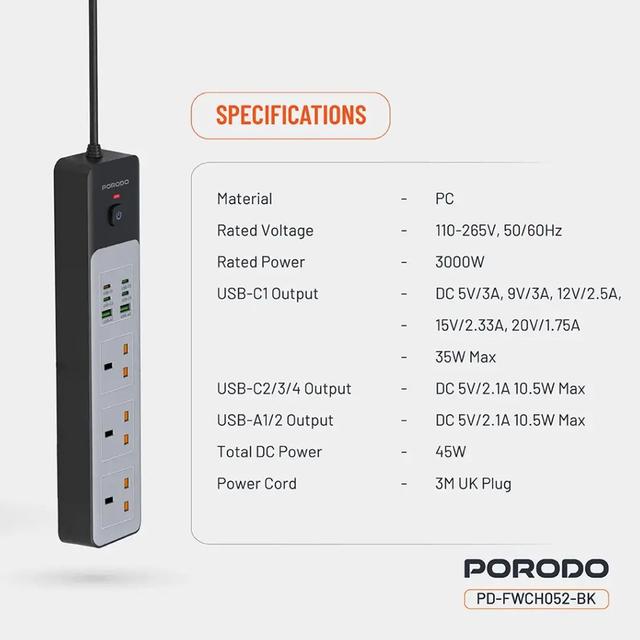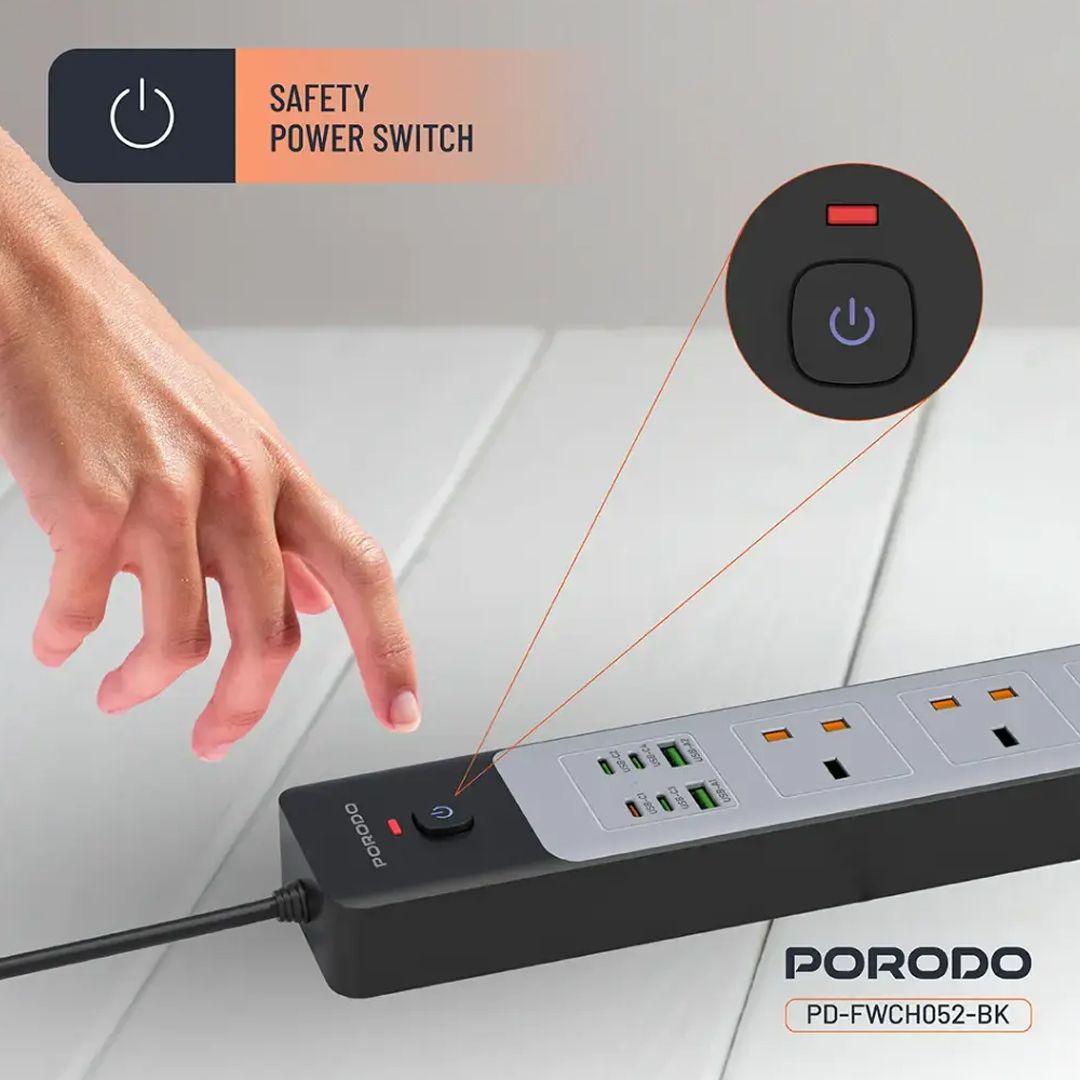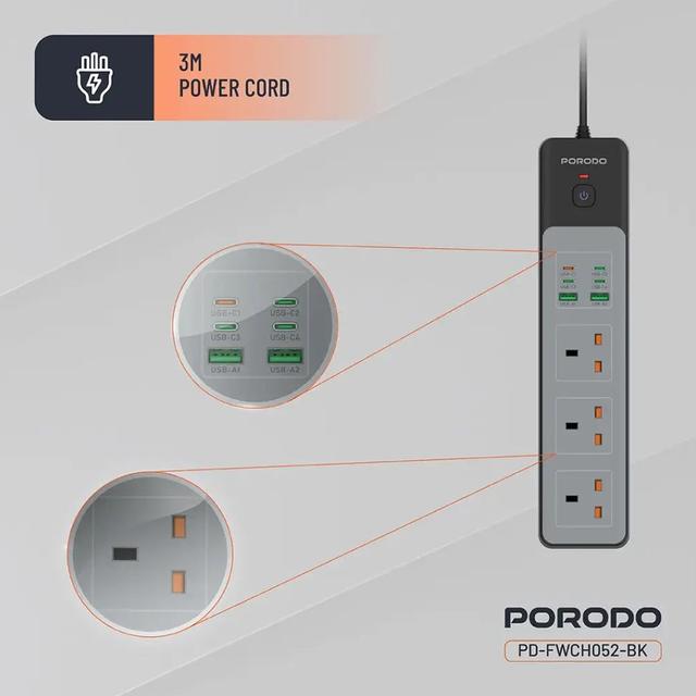 Porodo Power Strip هو الحل اللي يغنيك عن الزحمة والفوضى – تصميم أنيق، طاقة عالية، وشحن ذكي في نفس الوقت!