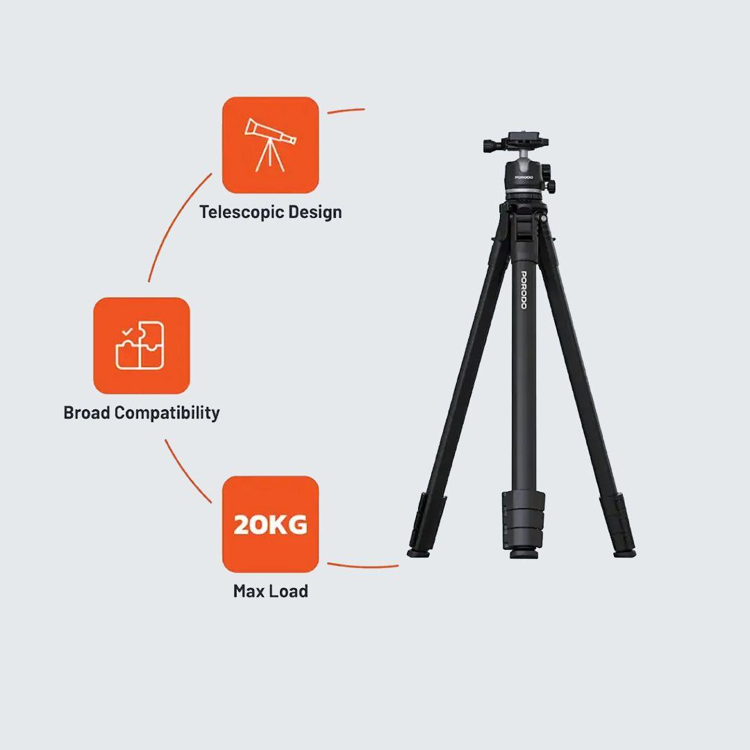 سواء كنت تستخدم كاميرا احترافية أو حتى جهازك الشخصي، الترايبود يناسب معظم الأجهزة ويعطيك منصة ثابتة لالتقاط صور رائعة.