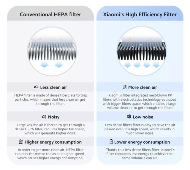 فلتر شاومي عالي الكفاءة يغطّي مساحة ترشيح توصل لـ24,000 سم²، ويزيل الجسيمات الدقيقة مثل PM2.5، حبوب اللقاح، ووبر الحيوانات.