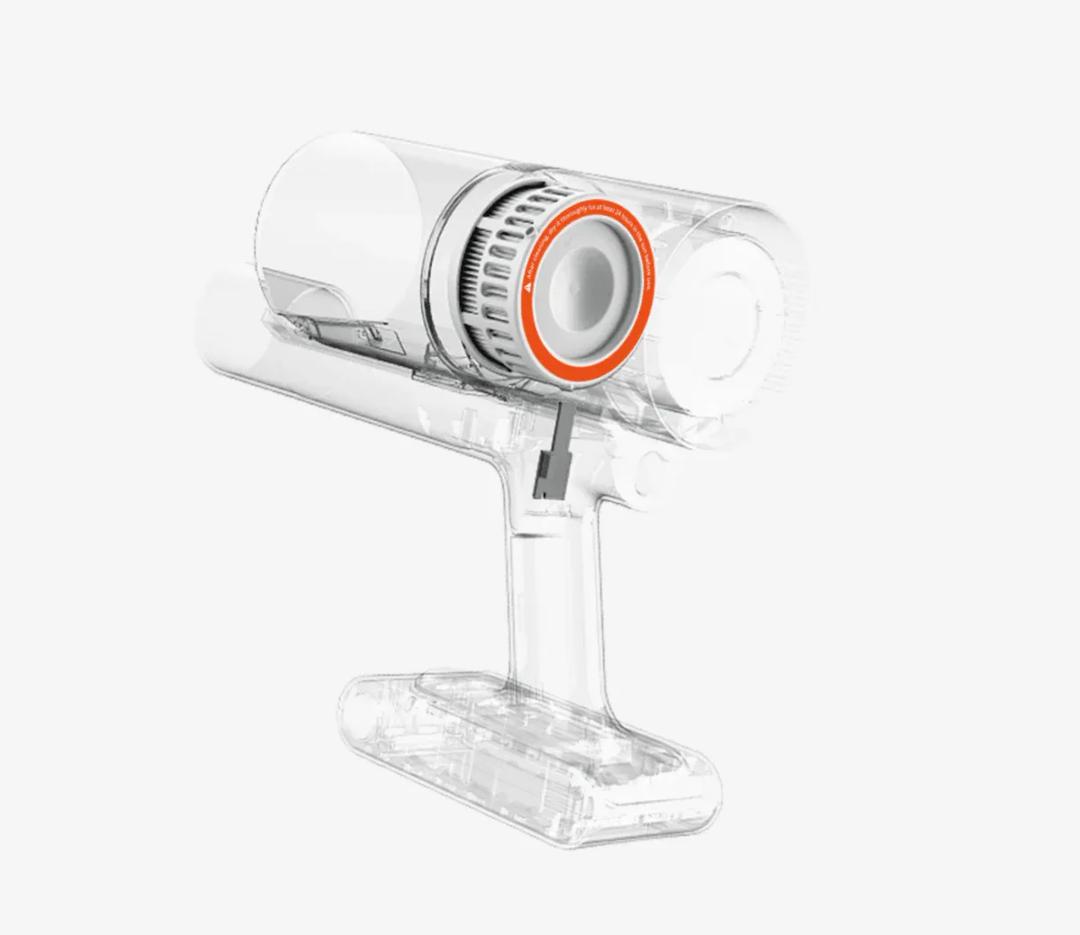 فيه مستشعر ذكي يراقب وجود الفلتر، والمكنسة ما تشتغل إلا إذا راكب. يعني ما راح يصير ضغط على المروحة، وراح تعيش مكنستك أطول بدون أعطال أو صوت مزعج.