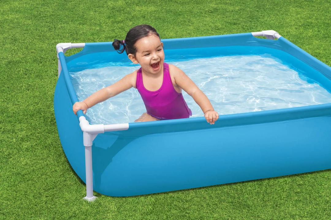 تبي تسعد عيالك بصيف ممتع وسهل التحضير؟ حوض السباحة من BESTWAY المربع بمقاس 1.22 م × 1.22 م × 30.5 سم هو الخيار المثالي للعب آمن ومنعش في الحوش أو على السطح.