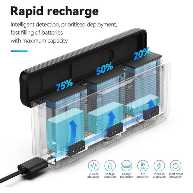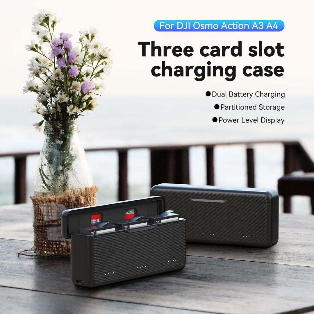 علبة شحن بطاريات كاميرا DJI Action 5 من تيليسـين ثلاثية المنافذ