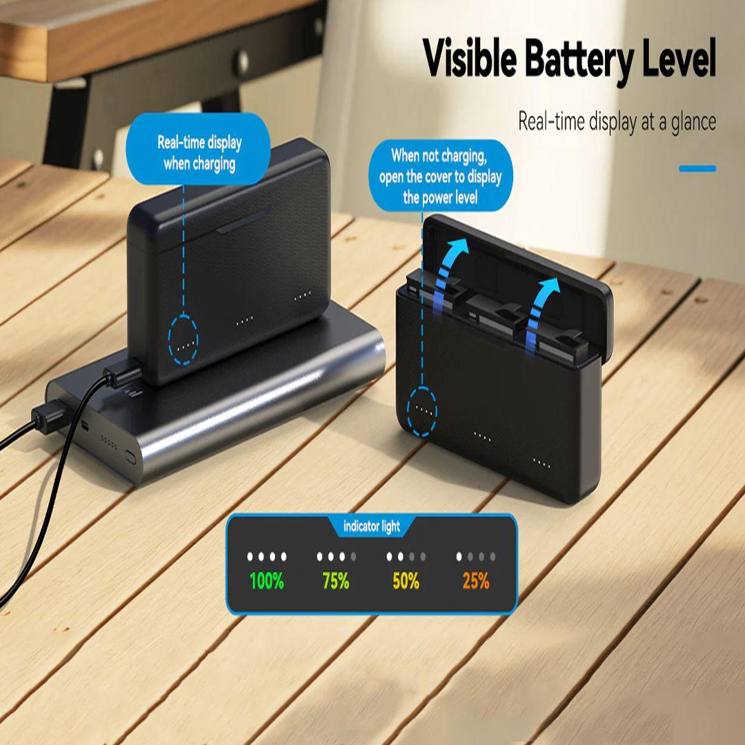 بدل ما تشحن بطارية واحدة وتستنى، العلبة بتشحن 3 بطاريات في وقت واحد.