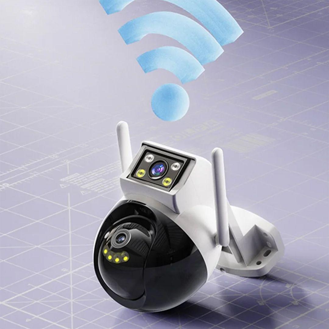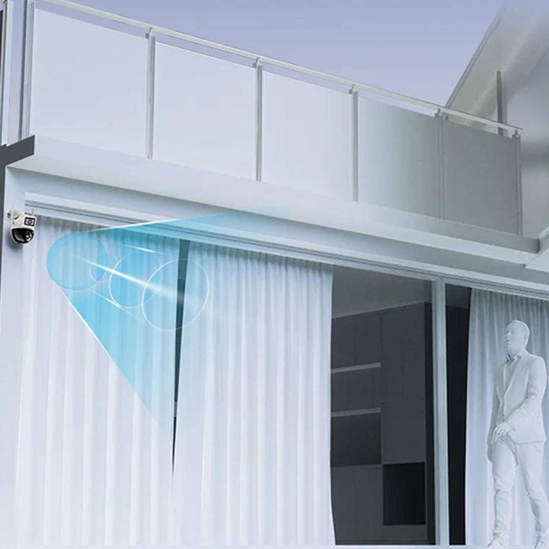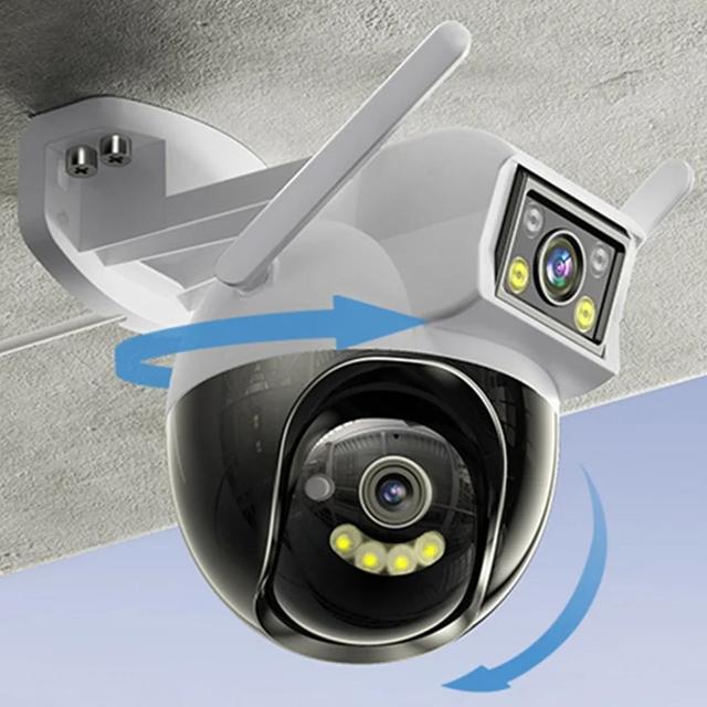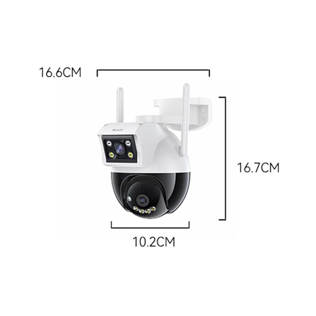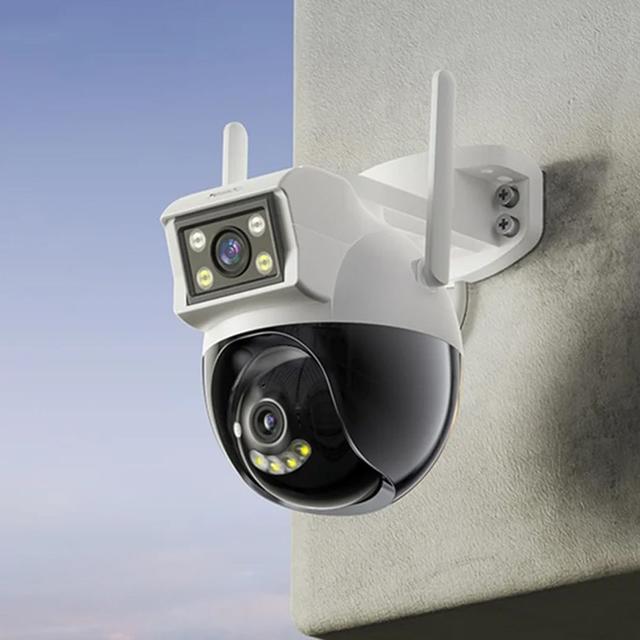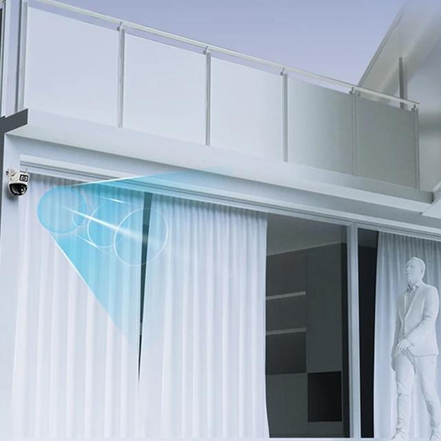 التصميم ثنائي العدسة يتيح مراقبة منطقتين بنفس الوقت، مناسب لغرف المعيشة، البلكونات، المطاعم، السوبرماركت، وكل الأماكن اللي تحتاج مراقبة شاملة.