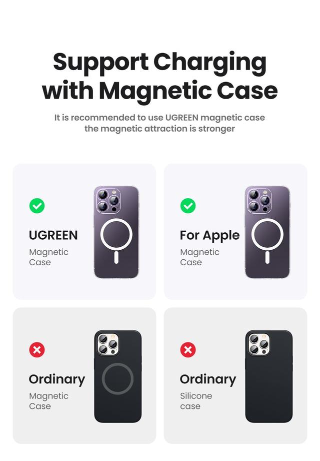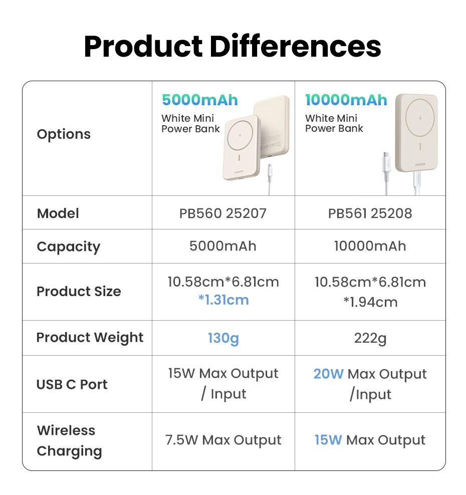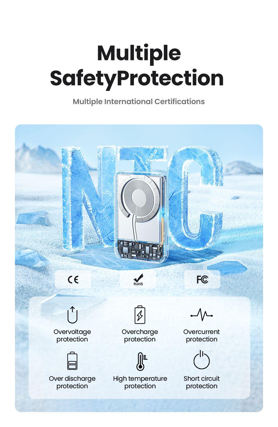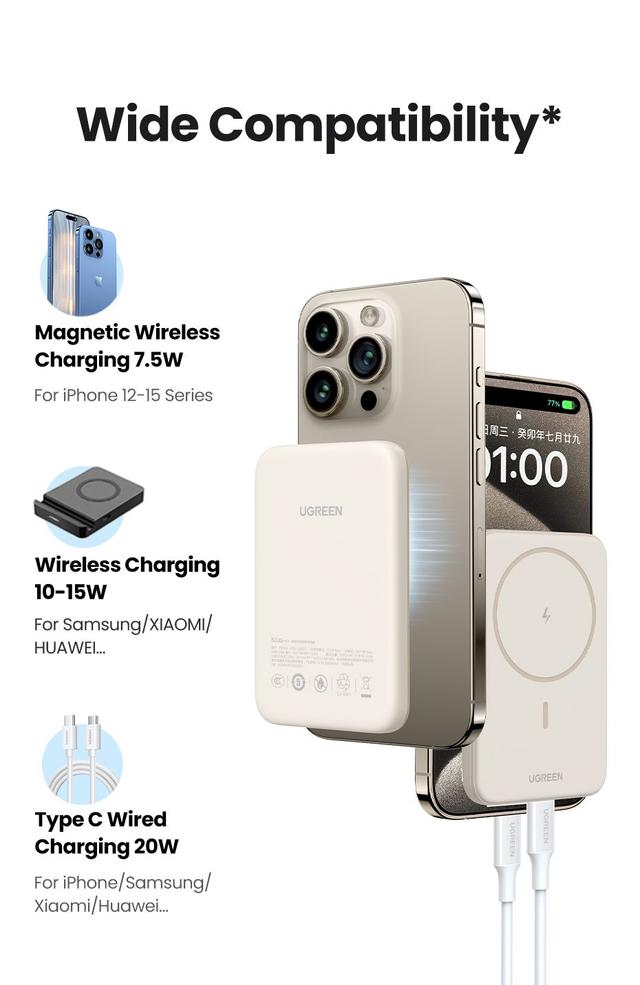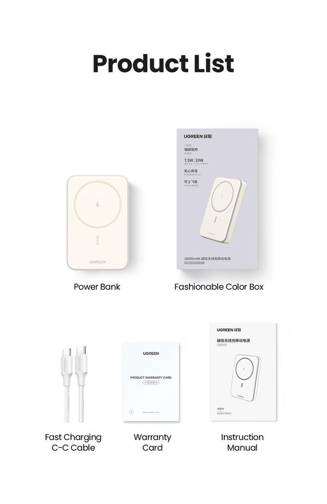 يجمع UGREEN PB561 15W Magnetic Power Bank 10000mAh بين سهولة الاستخدام المغناطيسي، والشحن اللاسلكي والسلكي المزدوج، وحجم محمول. المغناطيس القوي، التصميم النحيف، والسعة العالية تجعل هذا الباور بانك مثالياً لمستخدمي iPhone 12–15، للحفاظ على أجهزتهم مشحونة طوال اليوم مع إمكانية إجراء مكالمات فيديو والتقاط سيلفي بسهولة.