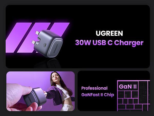 شاحن يوجرين نيكسود السريع USB-C PD GaN بقوة 30 واط (رمادي فلكي)