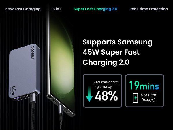 توافق عالمي: يعمل بسلاسة مع أجهزة MacBook Pro/Air، وiPhone 15/14/13، وGalaxy S24، وiPad Pro، وPixel، وغيرها، ويدعم تقنية الشحن السريع Super Fast Charge 2.0 من سامسونج بقوة 45 واط.