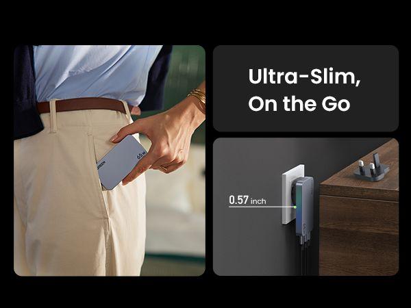 شاحن يوجرين نيكسود برو فائق النحافة، 65 واط، شاحن سريع بتقنية GaN بثلاثة منافذ