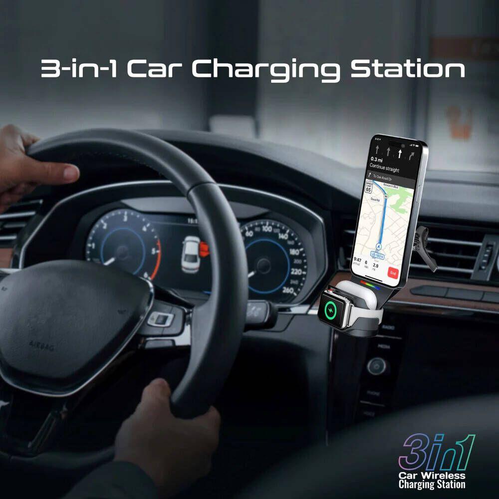 محطة شحن لاسلكية للسيارة 3 في 1 متوافقة مع MagSafe