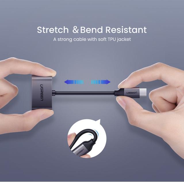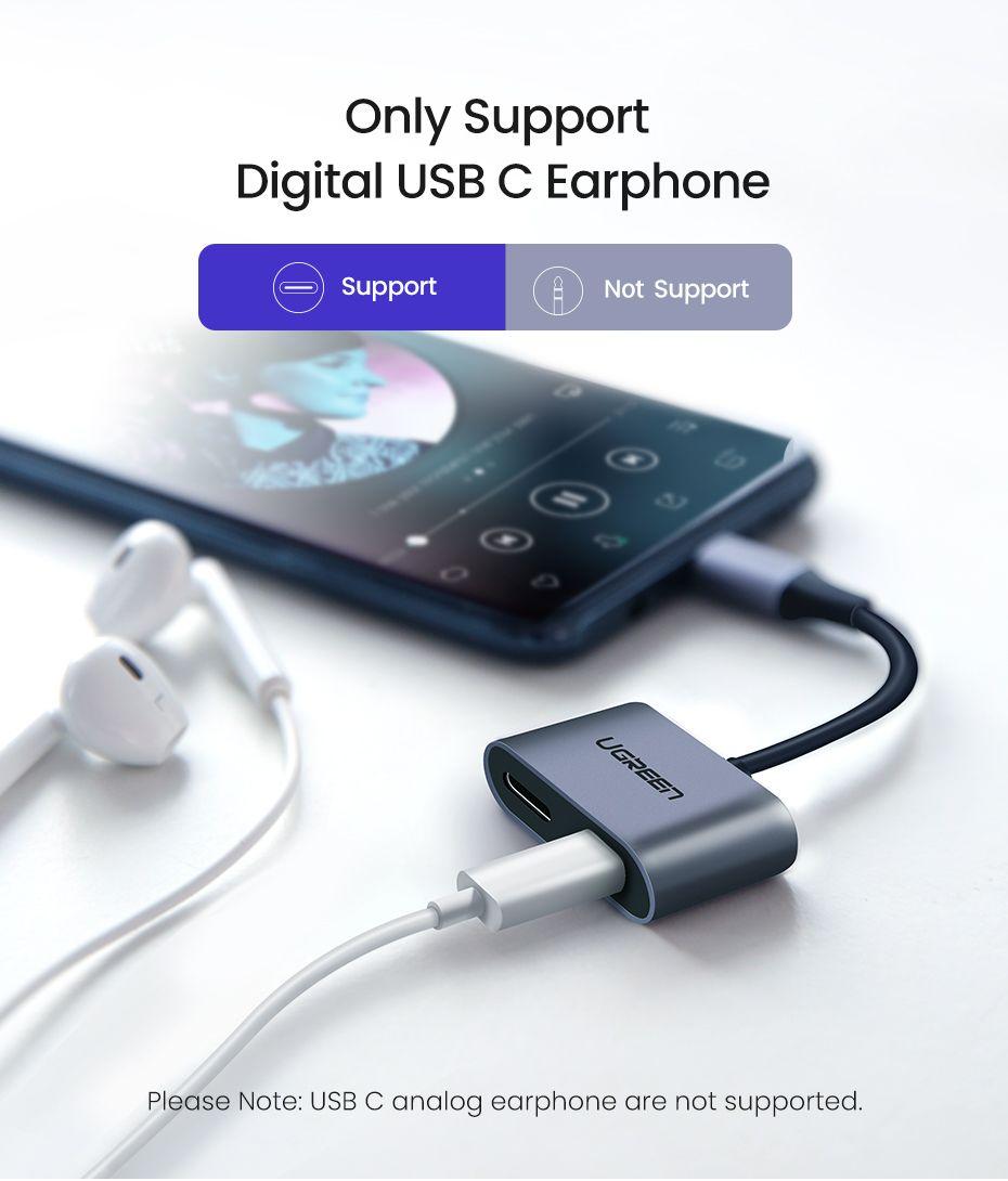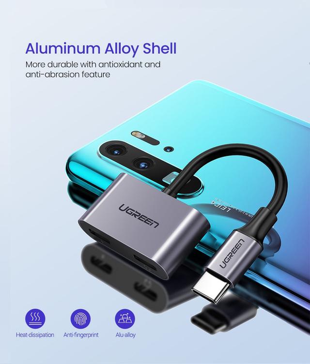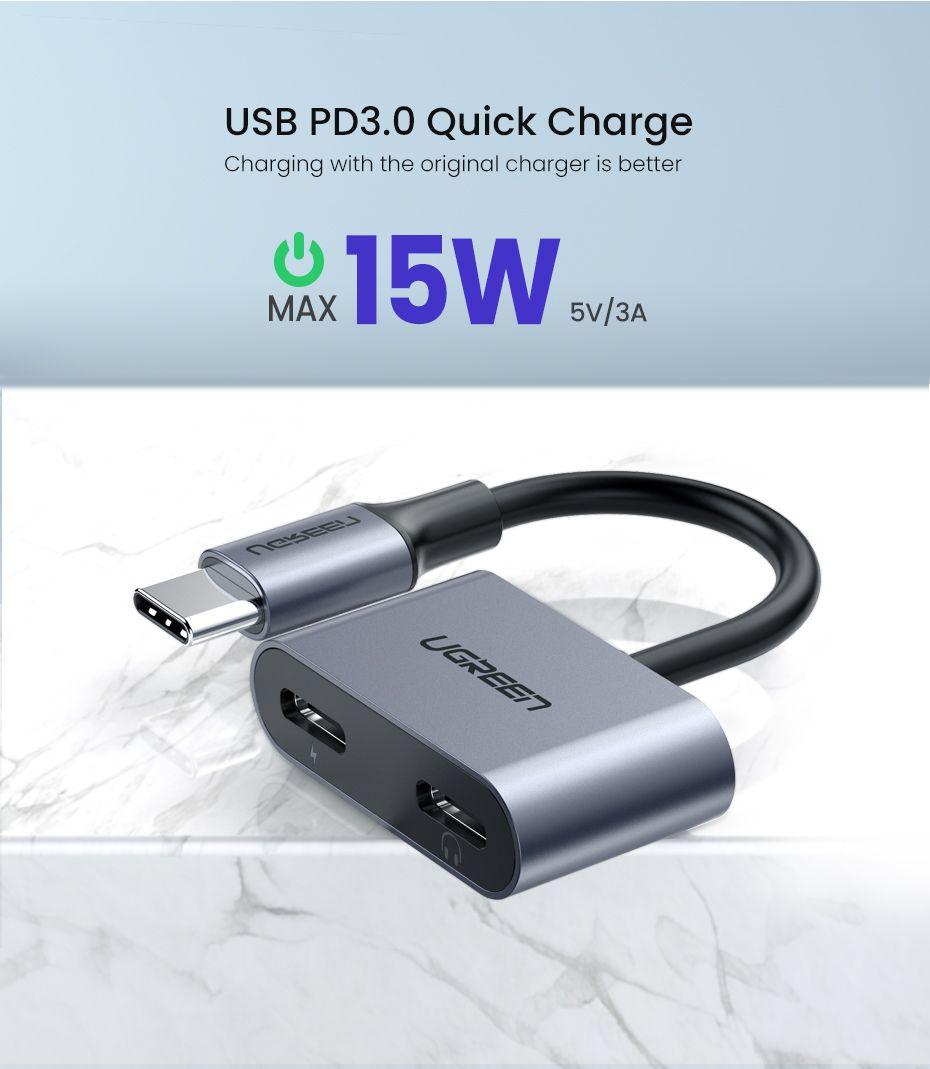 محول يوجرين للشحن من النوع C إلى النوع C + الموسيقى مع ميكروفون