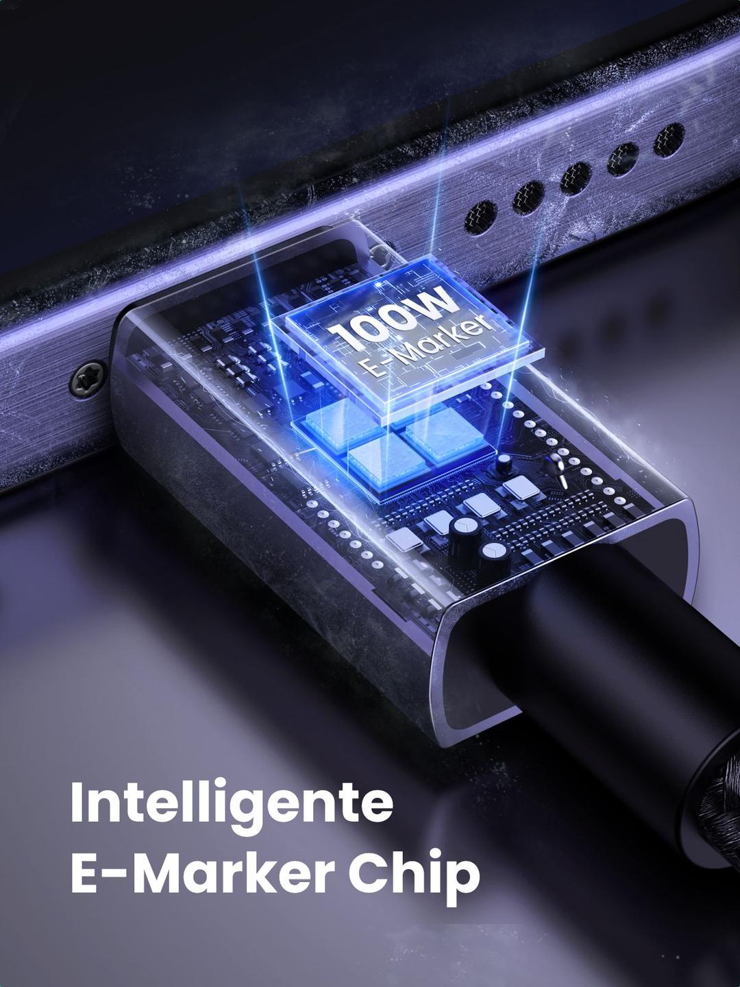 [شريحة E-Marker مدمجة لشحن مستقر]: يحتوي كابل USB Type-C هذا على شريحة E-Marker مدمجة عالية الأداء تتيح لك ضبط الطاقة وفقًا لمعيار USB PD3.1. مع معيار USB PD3.1، يمكنك اختيار الجهد الثابت الجديد 28 فولت و48 فولت، بالإضافة إلى 5 فولت و9 فولت و15 فولت و20 فولت. يتيح خيار الجهد الممتد مرونةً في توفير الطاقة للوصول إلى الجهد المطلوب لتشغيل جهازك بكفاءة.