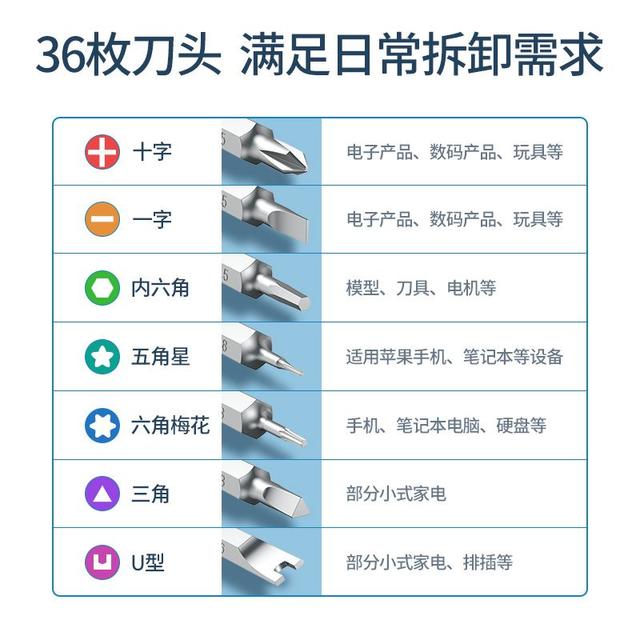 تعدد الأدوات: تحتوي المجموعة على 36 بتة براغي مختلفة لتلبية جميع احتياجات الصيانة والتركيب.