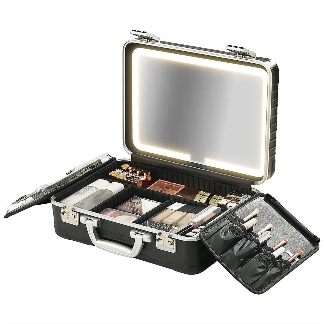 شنطة مكياج سفر من بورودو مع مراية LED تشيلها – إضاءة بروفيشنال وين ما تروحين