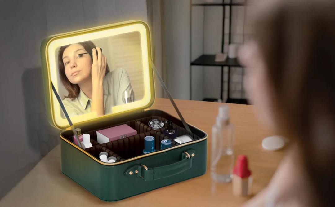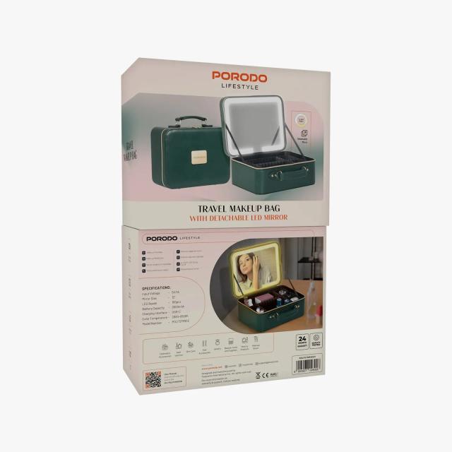 شنطة مكياج Porodo للسفر مع مرآة LED قابلة للفك – كلشي مرتب ومرن