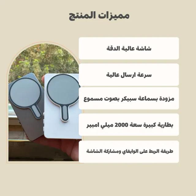 شاشة موبايل لاسلكية مع سماعة مدمجة – صور، اسمع، وشارك بجودة عالية