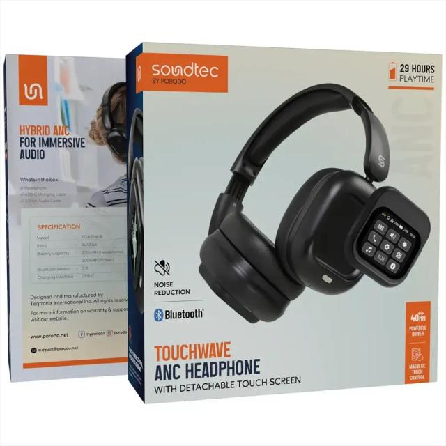 تُعد سماعة بورودو ساوندتك تاتش ويف ANC المزودة بشاشة لمس قابلة للفصل نقلة نوعية في عالم سماعات الرأس بفضل قدرتها على إحداث نقلة نوعية وتصميمها الأنيق. تُعد شاشة اللمس القابلة للفصل إحدى أهم ميزاتها، حيث تتيح لك التحكم في الموسيقى ومستوى الصوت والإعدادات بلمسة واحدة فقط - دون الحاجة إلى هاتف. أما الضوضاء التي لا ترغب في سماعها، فتُزيلها تقنية إلغاء الضوضاء النشطة الهجينة (ANC) تمامًا، لتغمر نفسك في عالمك الموسيقي الخاص أينما كنت. تتميز سماعة الرأس بتقنية Touchwave، المزودة باتصال لاسلكي بتقنية Bluetooth 5.4 ومشغل قوي بقطر 40 مم، لتمنحك تجربة صوتية متكاملة - نغمات عالية نقية، وصوت جهير عميق، وصوت متوسط نقي، مع حساسية صوت تبلغ 105 ديسيبل ونطاق ترددي يتراوح بين 20 و20 كيلوهرتز. عمر البطارية الطويل الذي يصل إلى 29 ساعة، بالإضافة إلى الشحن السريع عبر منفذ USB-C، يعني أنك ستستمتع بجلسات استماع طويلة مع أقل قدر من التوقف. ولإضافة المزيد من الراحة وسهولة الحمل، تتميز بتصميم قابل للطي، وميكروفون مدمج، وتحكم مغناطيسي باللمس لسهولة الاستخدام. سماعة Touchwave ليست مجرد قطعة تقنية، بل هي رفيق سفر في حقيبتك أينما ذهبت، سواء للعمل أو للترفيه. صوتها الفاخر يجعل من الصعب مقاومة جودة تجربة الصوت التي تأتي مع التكنولوجيا.