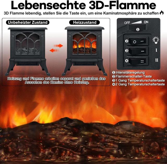تصميم كلاسيكي: مدفأة كهربائية عالية الجودة. تصميمها الفريد المستوحى من الحديد الزهر يخلق جواً دافئاً في أي مكان. بفضل نافذة العرض الواسعة، ستستمتع برؤية مثالية للحطب الواقعي.