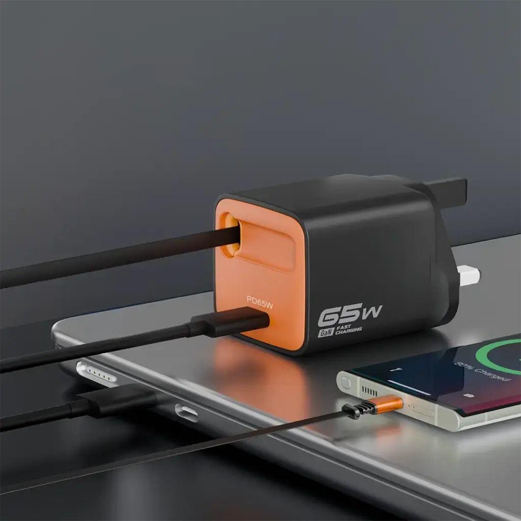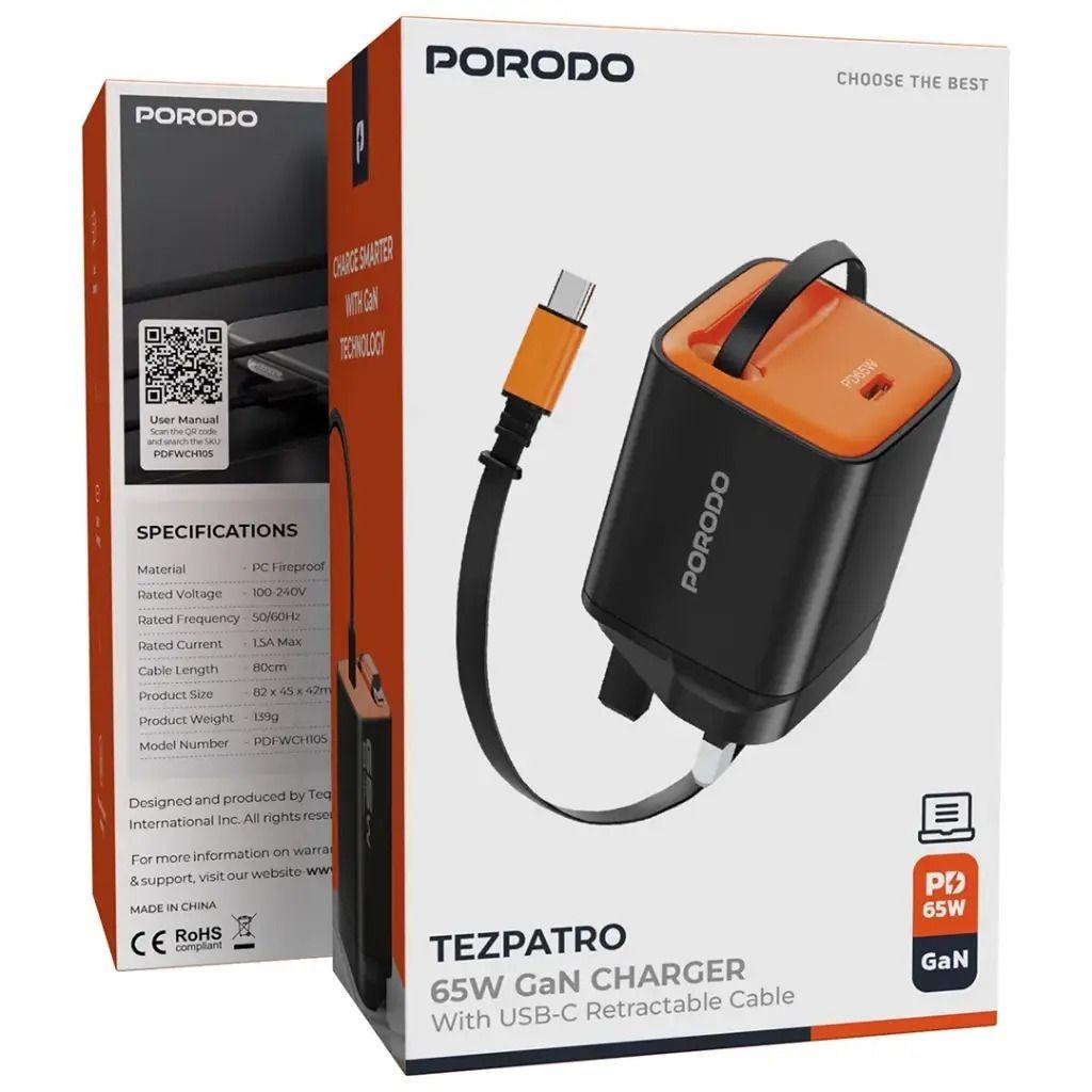 شاحن بورودو تيزباترو 65 واط بتقنية GaN مع كابل USB-C قابل للسحب