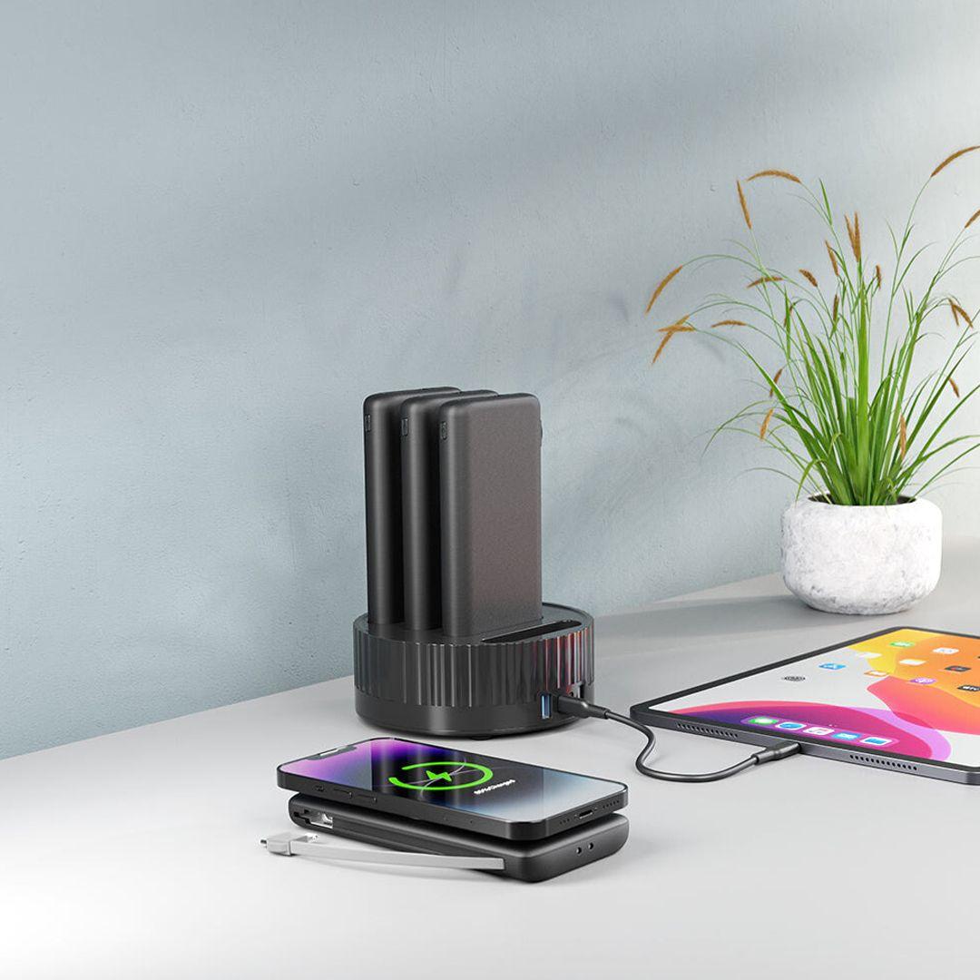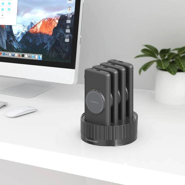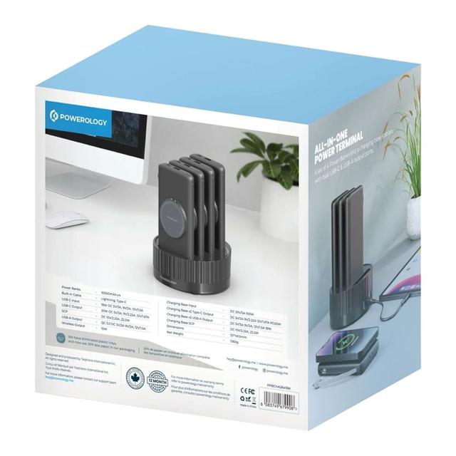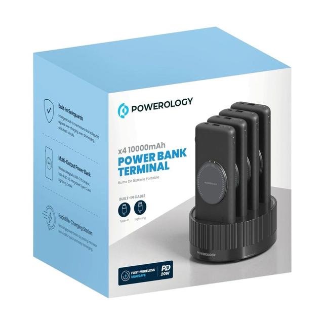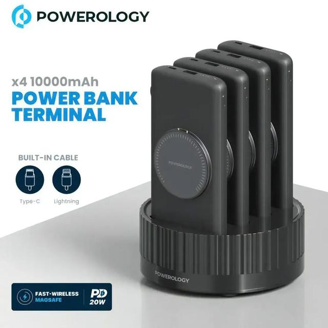 إذا كنت تشعر بنقص في شاحن متنقل قوي على مكتبك، فإن شاحن Powerology Terminal هو الحل الأمثل! يتكون هذا الشاحن من 4 وحدات، بسعة إجمالية تبلغ 40000 مللي أمبير. يمكنك وضع هذه الوحدات الأربع على الحامل والاستمتاع بشحن سريع. لست بحاجة لحمل كابل معك أينما ذهبت، فبإمكانك استخدام الكابل المدمج بكل سهولة. يتميز هذا الشاحن بمنافذ متعددة، ونظام حماية مدمج، وتقنية الشحن اللاسلكي السريع، مما يجعله خيارًا آمنًا وموثوقًا للشراء!
