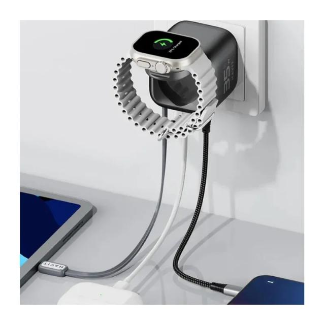شاحن حائط سريع HAVIT UC250-A 35W GaN مع كيبل Type-C قابل للسحب