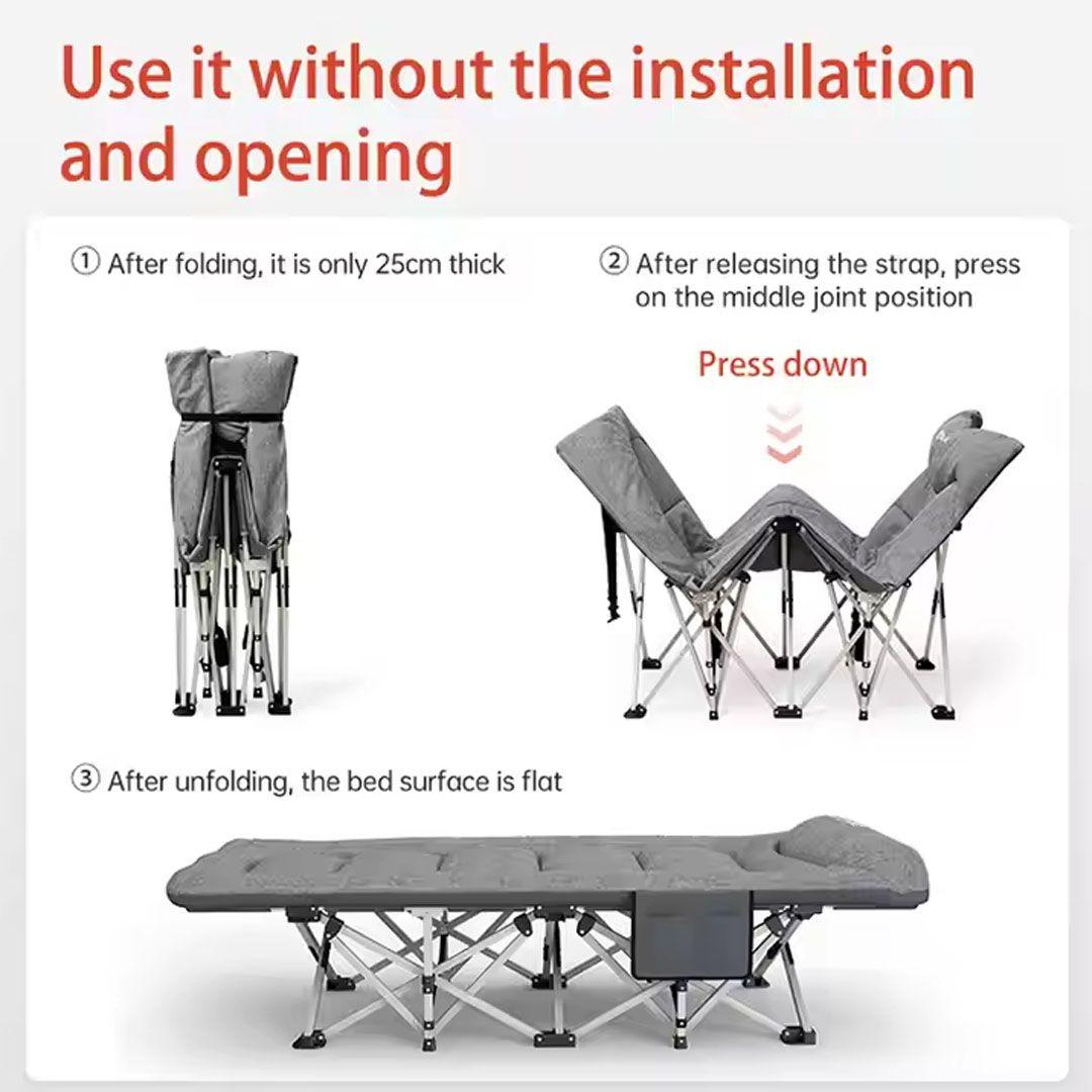 Exceptional comfort: The folding bed with a memory foam headrest provides unparalleled comfort for a peaceful sleep all night long.